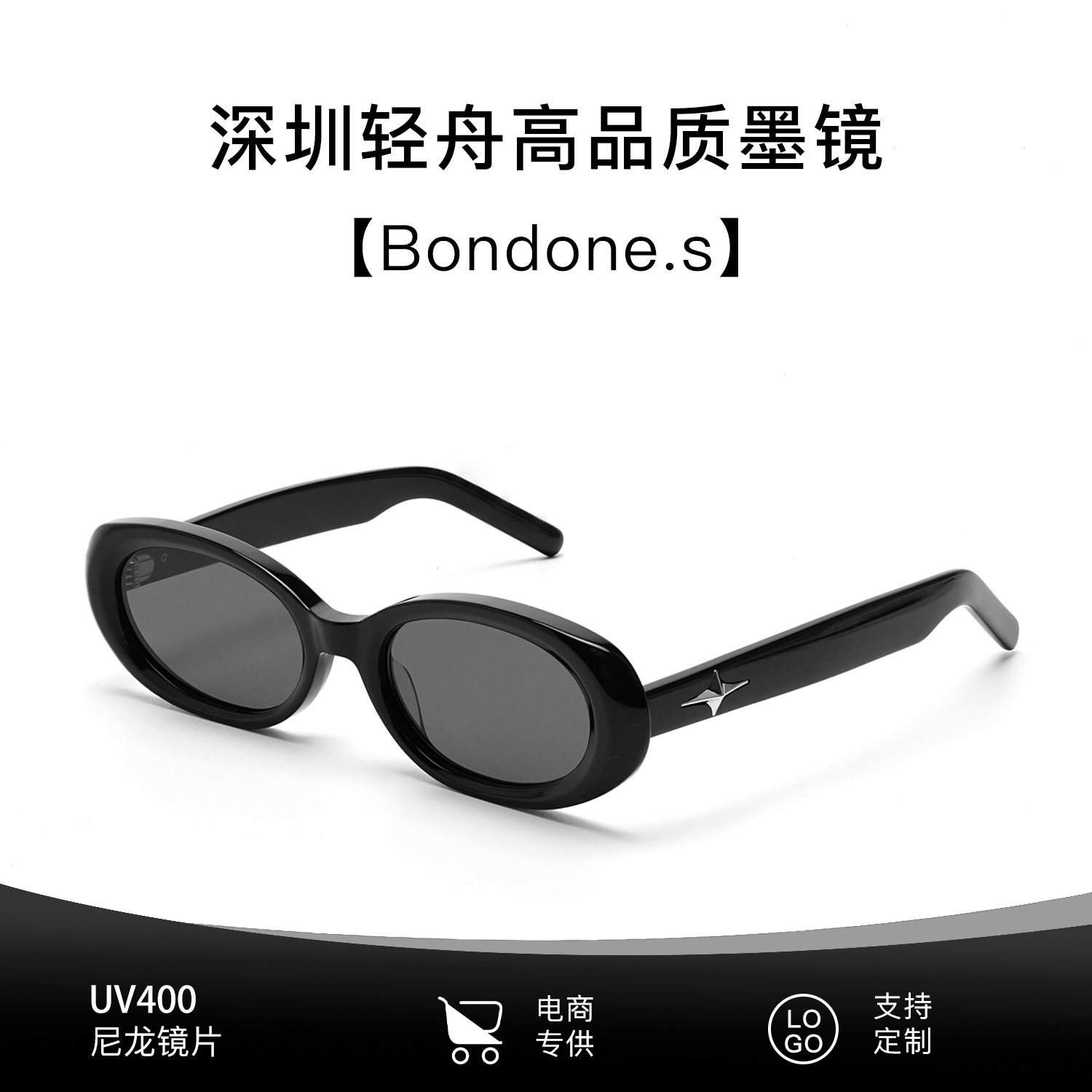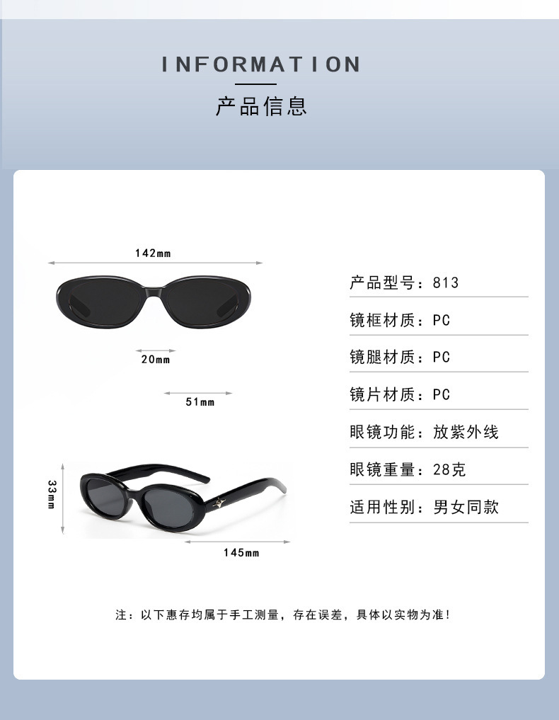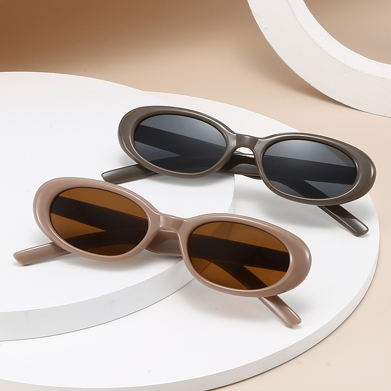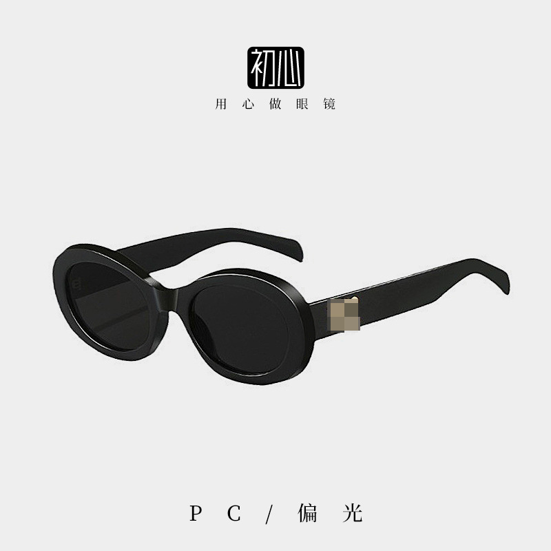 新款时尚椭圆框墨镜百搭防紫外线太阳镜男女通用潮牌眼镜
