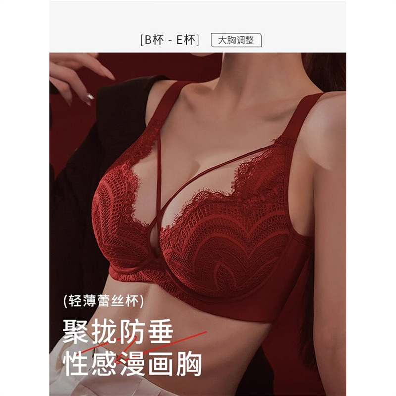 赤い動物年大きいサイズの下着レースプッシュアップ大きな胸を小さく見せるプッシュアップたるみ防止セクシーなブラジャーは胸を引き締めます