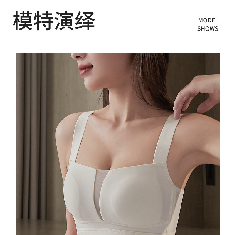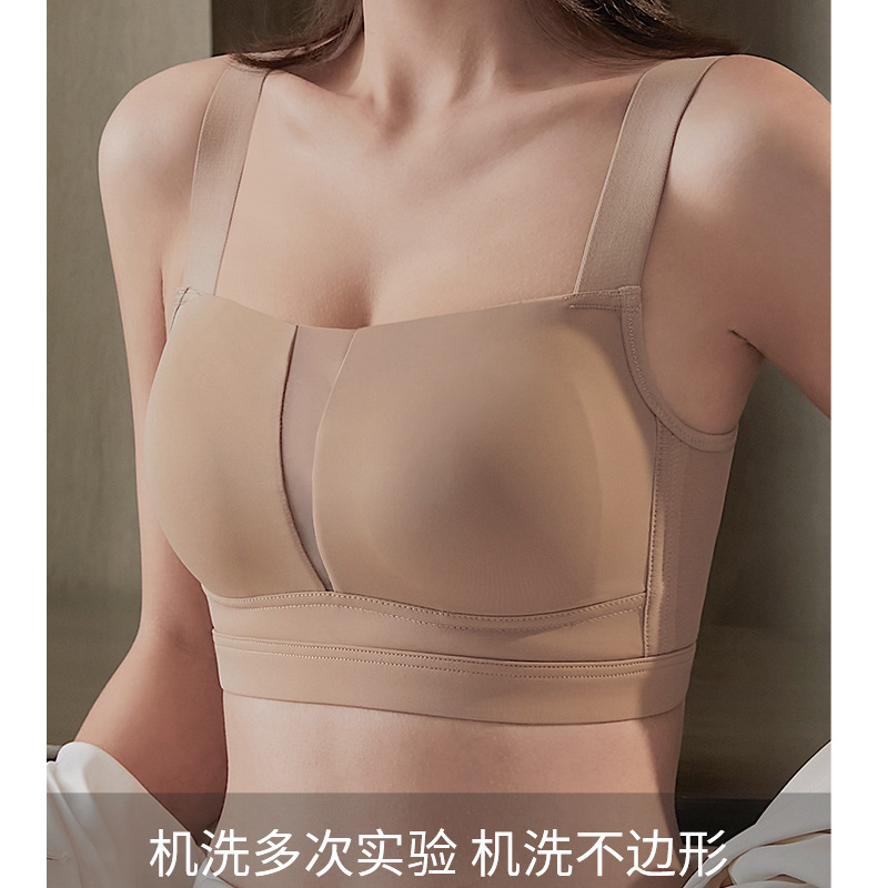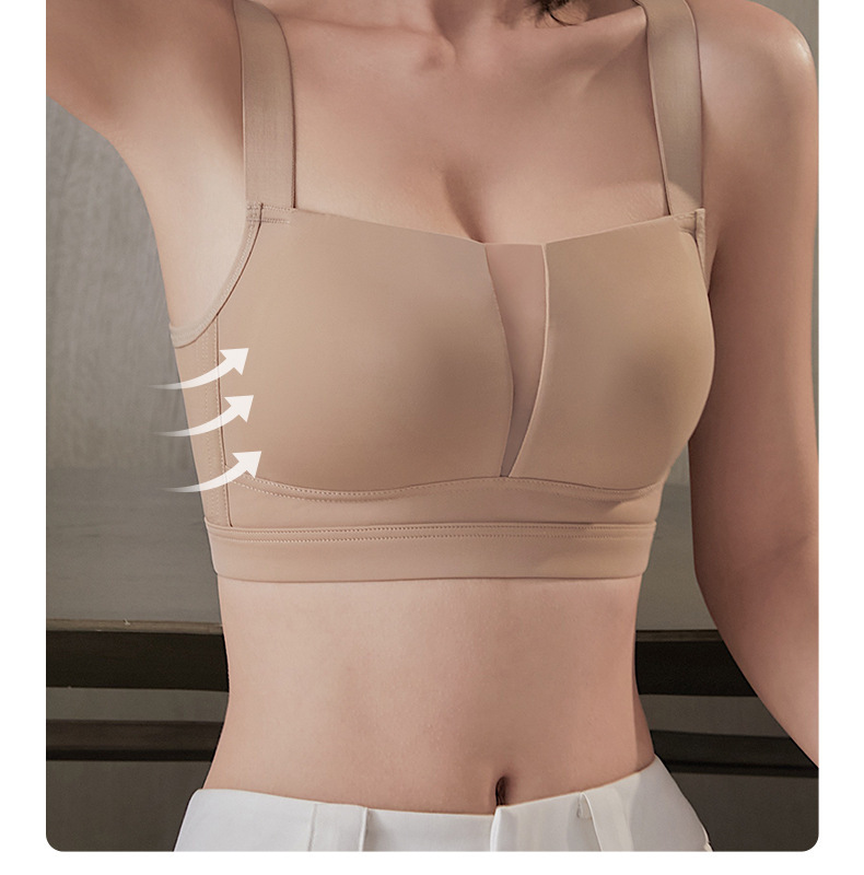 スクエアネックシームレスブラ、ワンピース型ノンワイヤー、大きい胸を小さく見せる、プッシュアップ、スポーツ、美背ブラ、薄型、夏用