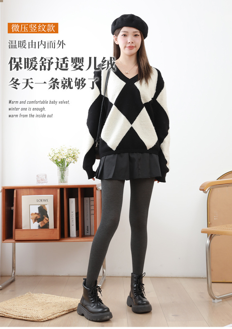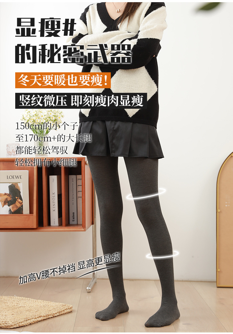 2024 オールインワン半透明薄手ベルベットコットン縦縞サーマルレギンス 1200D (200g) ブラック スモーク グレー 厚手