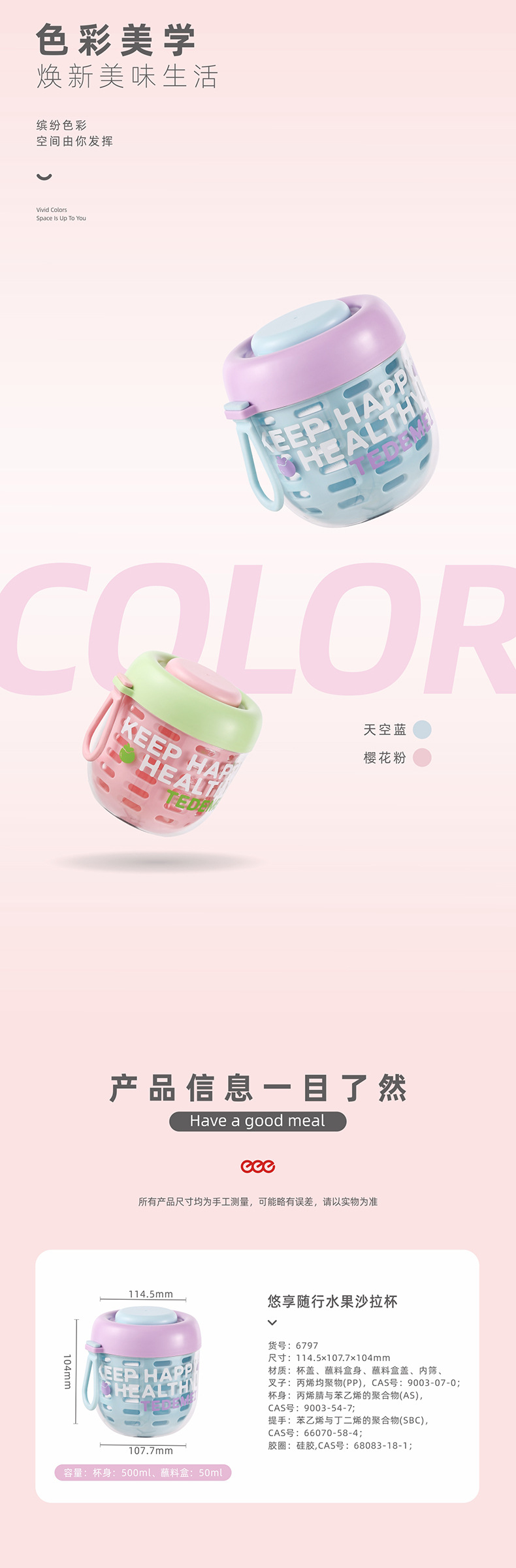 便携外带野餐水果盒便当盒上班族水果沙拉杯水果杯圆形沥水保鲜盒