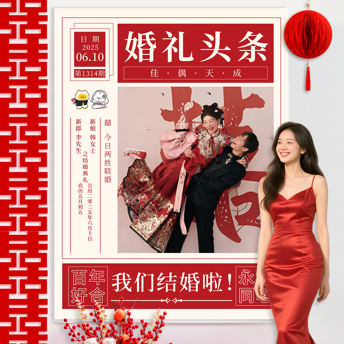 结婚大日历背景墙挂布照片海报挂画婚房装饰布置晨袍拍照道具