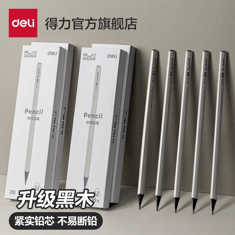 得力纽赛小灰杆黑木铅笔学生专用一二年级铅笔hb2b儿童幼儿园学习