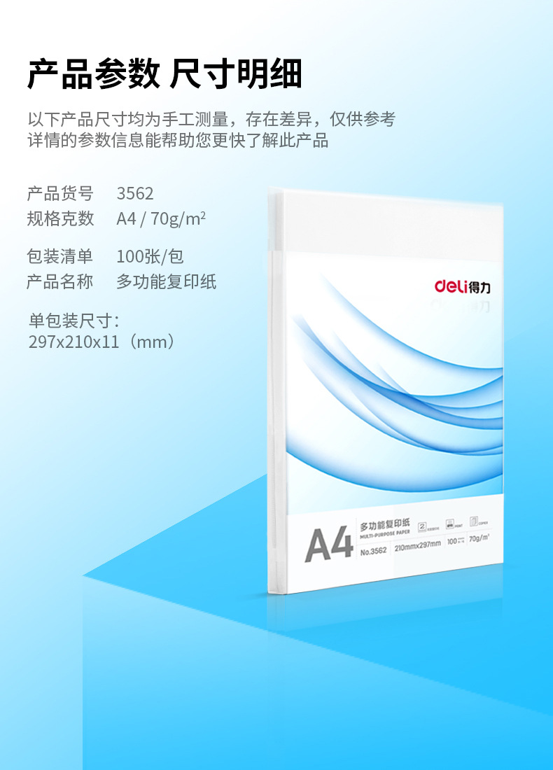 得力3562多功能复印纸打印纸70克/100张学生草稿纸双面打印用纸