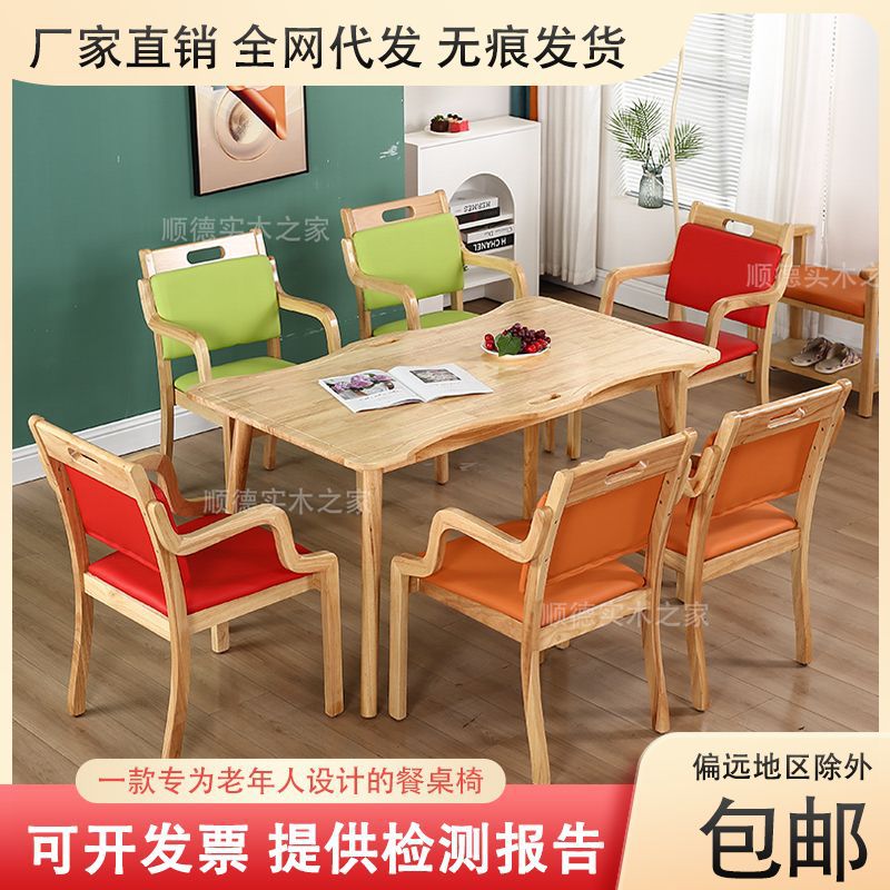 無垢材の老人ホームのダイニングテーブルと椅子、高齢者向けのアパートのレストランの椅子のフレーム、ダイニングテーブルと椅子、高齢者向けの適切な椅子、高齢者向けの介護P^