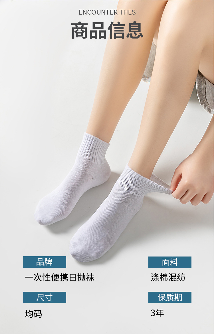 使い捨て靴下 男女兼用 旅行用 携帯用 1日使い捨て 圧縮中筒靴下 四季対応 吸汗性 ショートソックス 個別包装