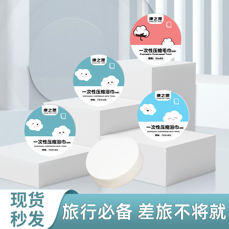使い捨て圧縮バスタオル、厚手のタオル、個別包装、ホテルやB&Bの必需品、携帯用フェイスタオル