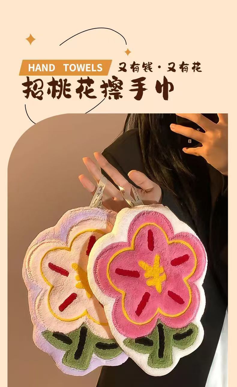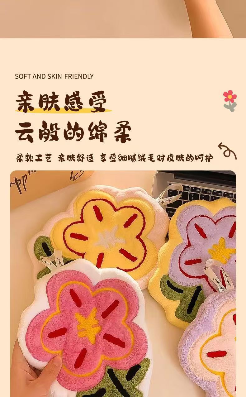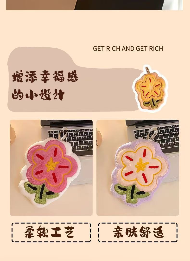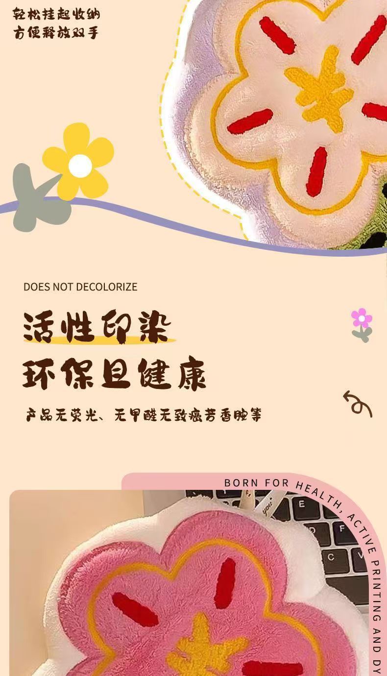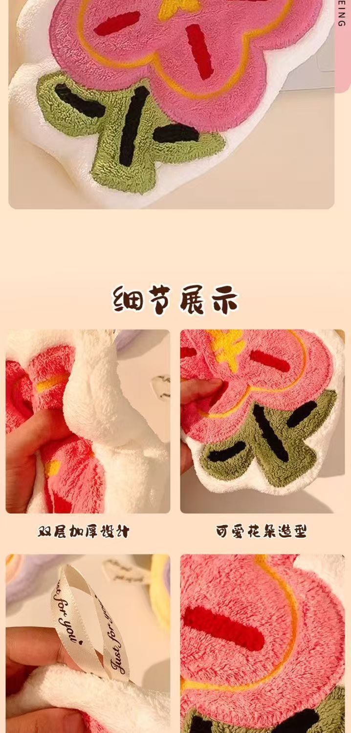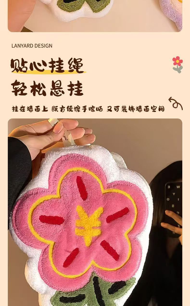 花朵擦手巾挂式吸水加厚卫生间擦手帕厨房抹布毛巾儿童洗手小方巾