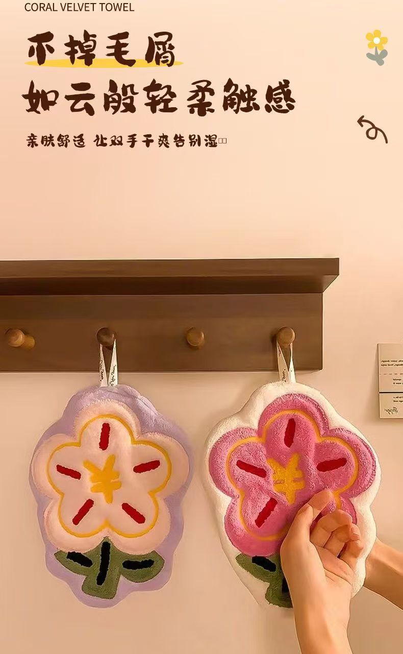 法式擦手巾挂式吸水家用珊瑚绒毛巾厨房浴室加厚擦手布可爱伴手礼