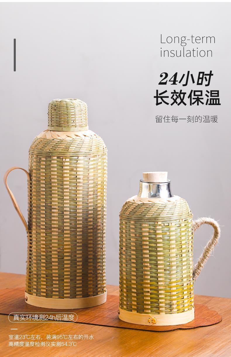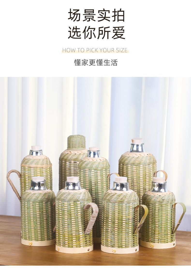 内胆家庭用大容量ポット保温茶室レトロ竹編湯沸かし器卸売り竹青中華料理店手作り