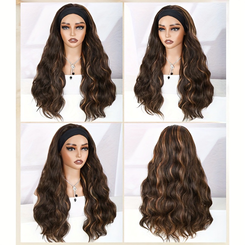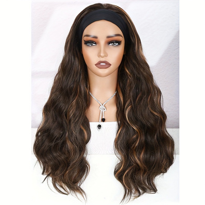 2024年越境新商品 ヘアバンドウィッグ 欧米風ウィッグ 女性用ロングカールヘア 化繊ヘアカバー ヘッドバンドウィッグ
