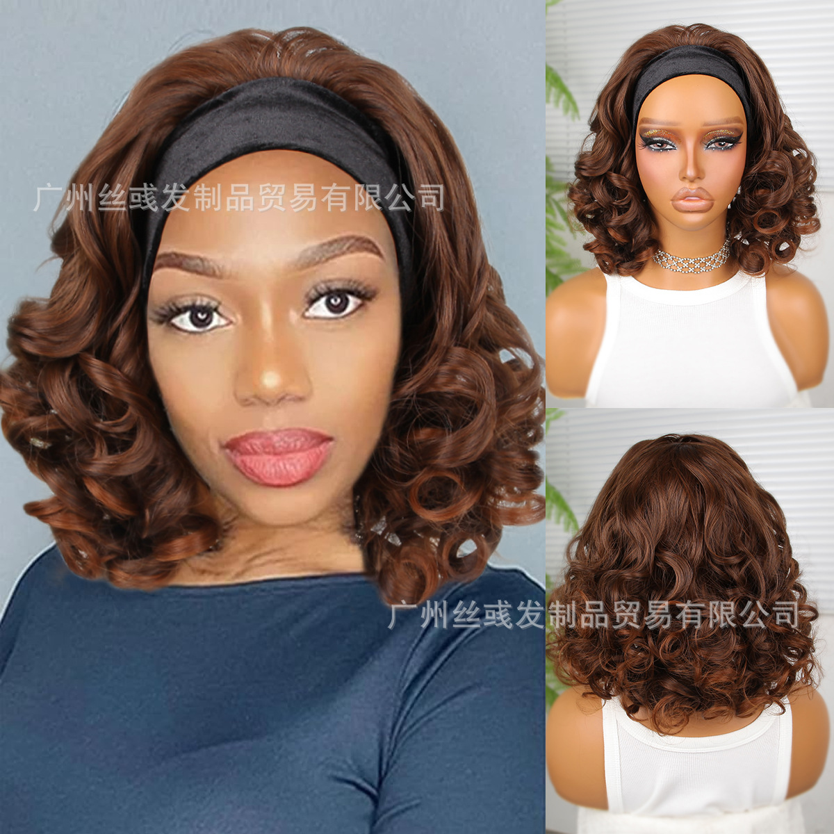 ターバンかつら氷糸ヘアバンド短巻きヘアセットヘッドバンドwig化学繊維かつらセット工場卸売