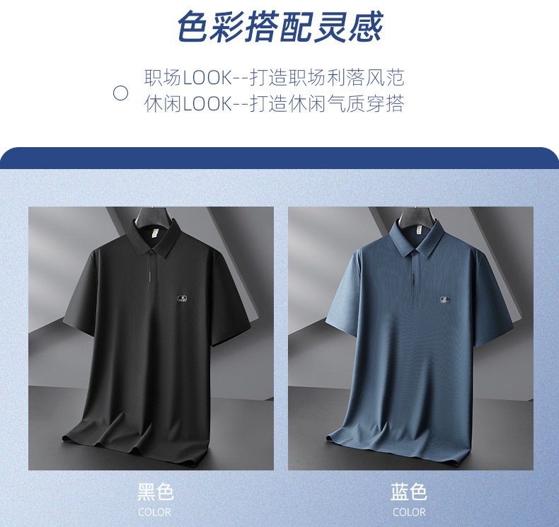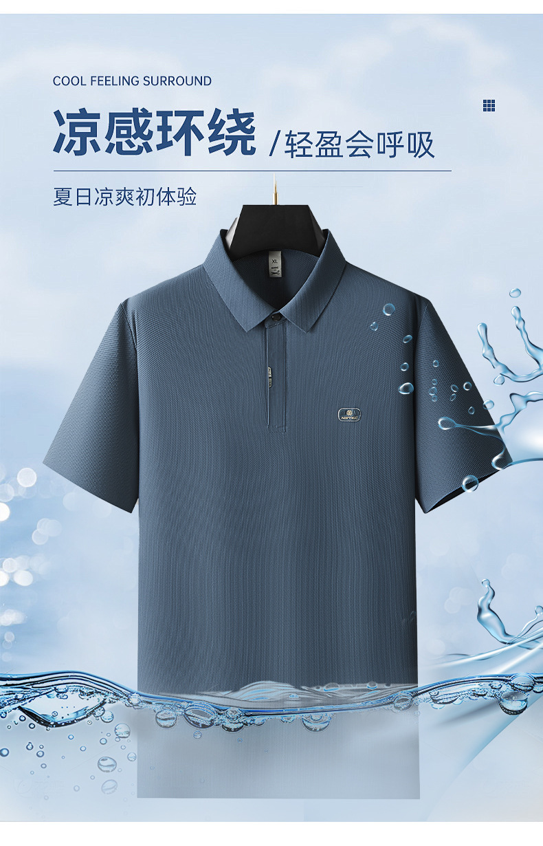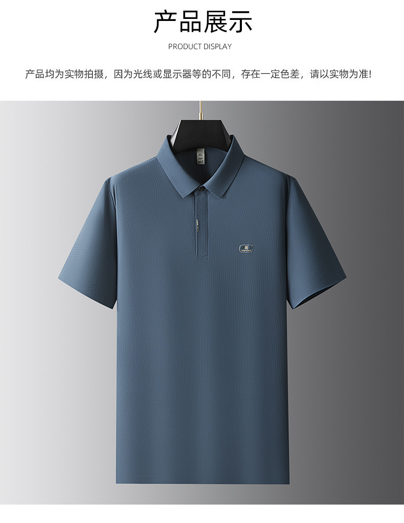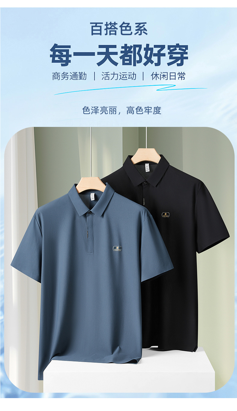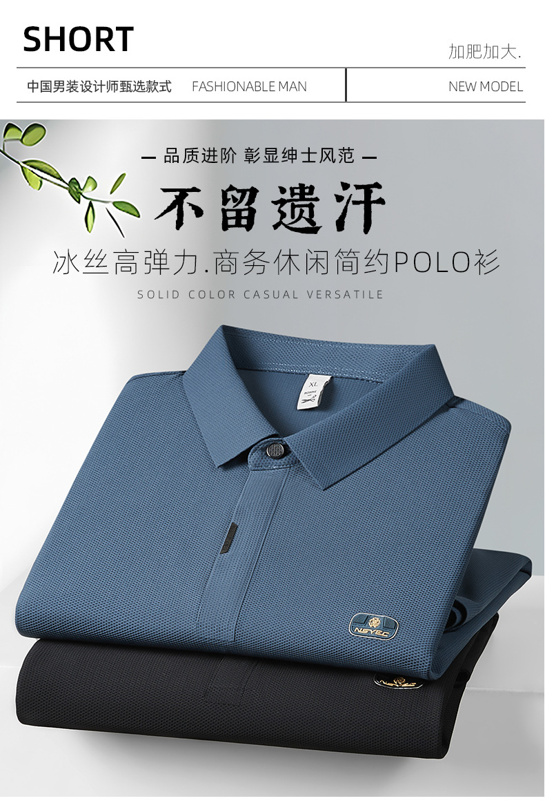 夏アイスシルクメンズポロシャツ大きいサイズ紳士服プラスファットプラス中年ビジネスハイエンド半袖Tシャツメンズトレンディ