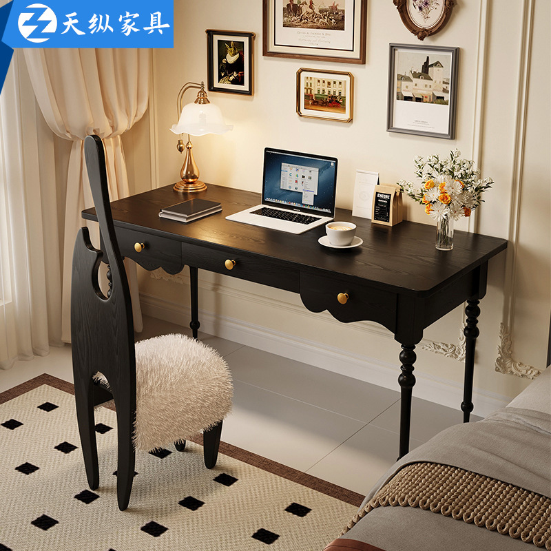 天縦フランス復古全実木机家庭用デスク白蝋木寝室コンピュータデスク学生が字を書くテーブル
