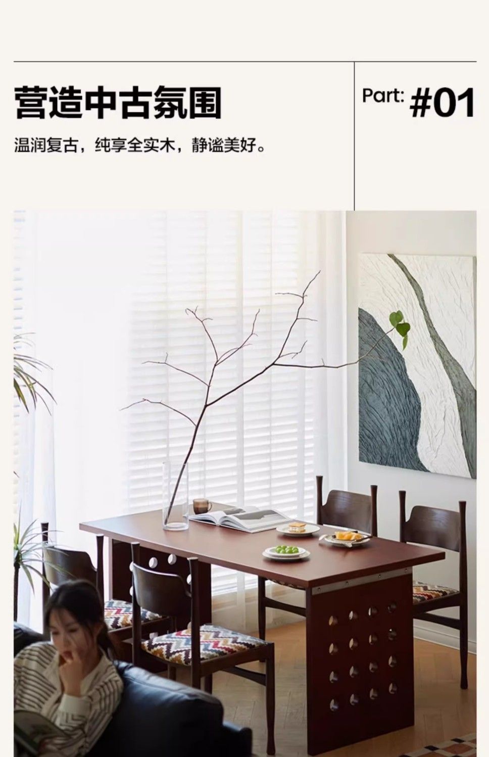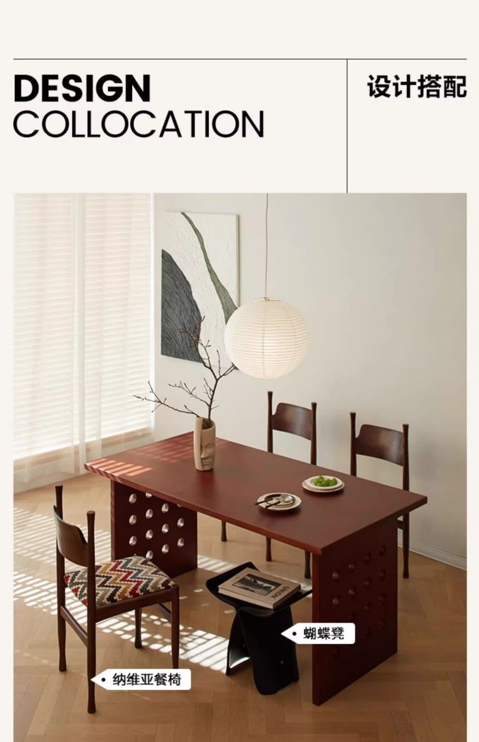 北欧实木餐桌复古茶桌会议桌侘寂风原木书桌工作台长桌洽谈桌子