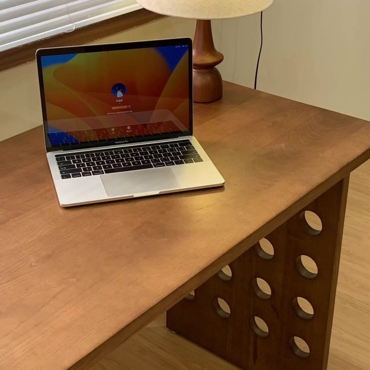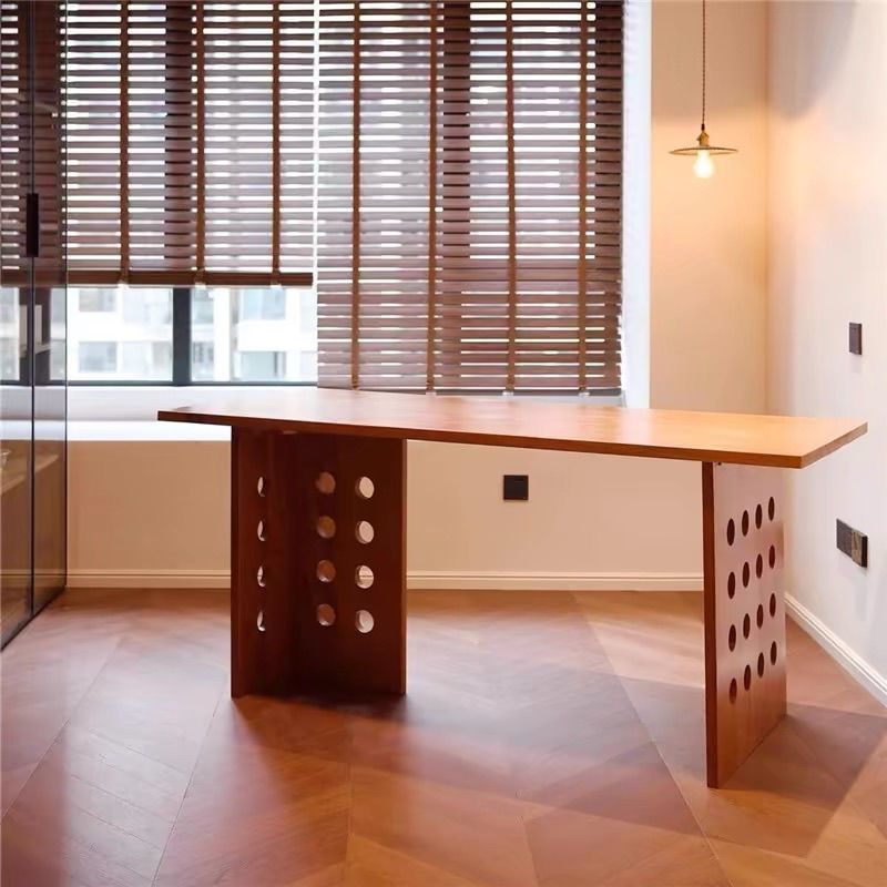 中古风全实木书桌洞洞工作台现代家用电脑桌高端新款办公桌长条桌