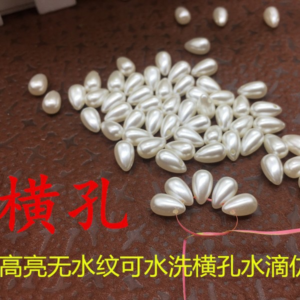 イヤリング用パールDIY水滴型吊り下げ穴付きビーズ卸売模造横穴単穴白6mm