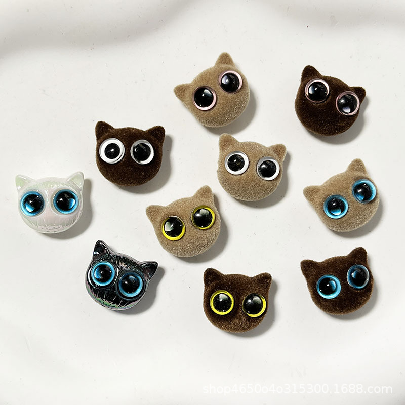 植毛樹脂の黒い猫の頭の青い目の黄色い目のdiyの穴の横穴のかわいい猫のアクセサリーのブレスレットの部品