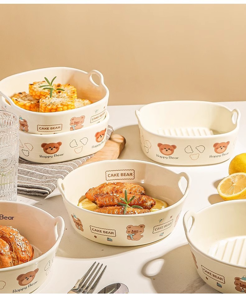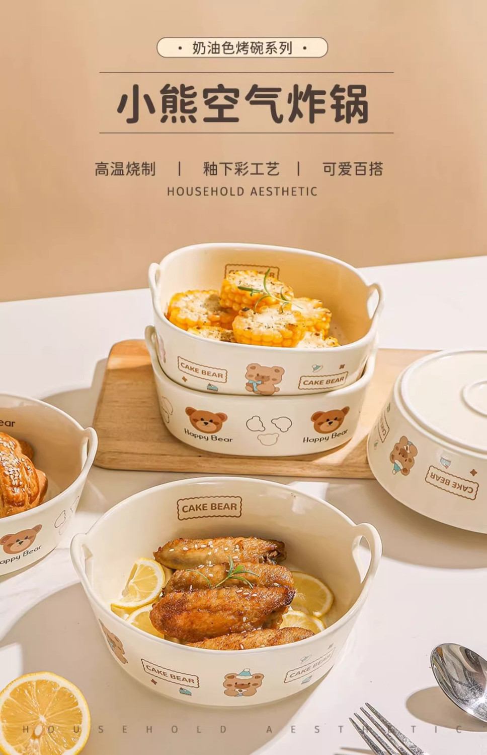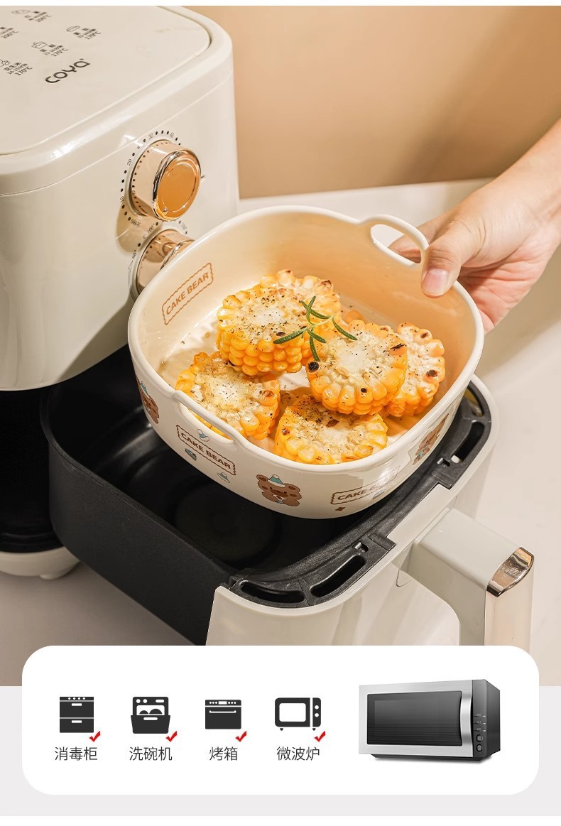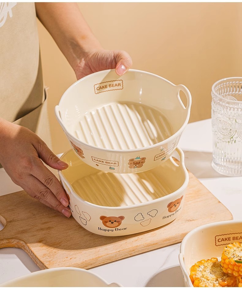 両耳空気フライヤー専用のボウルオーブン用焼きボウル陶磁器グラタン焼き皿焙煎ボウル蒸し卵ボウルサラダボウル