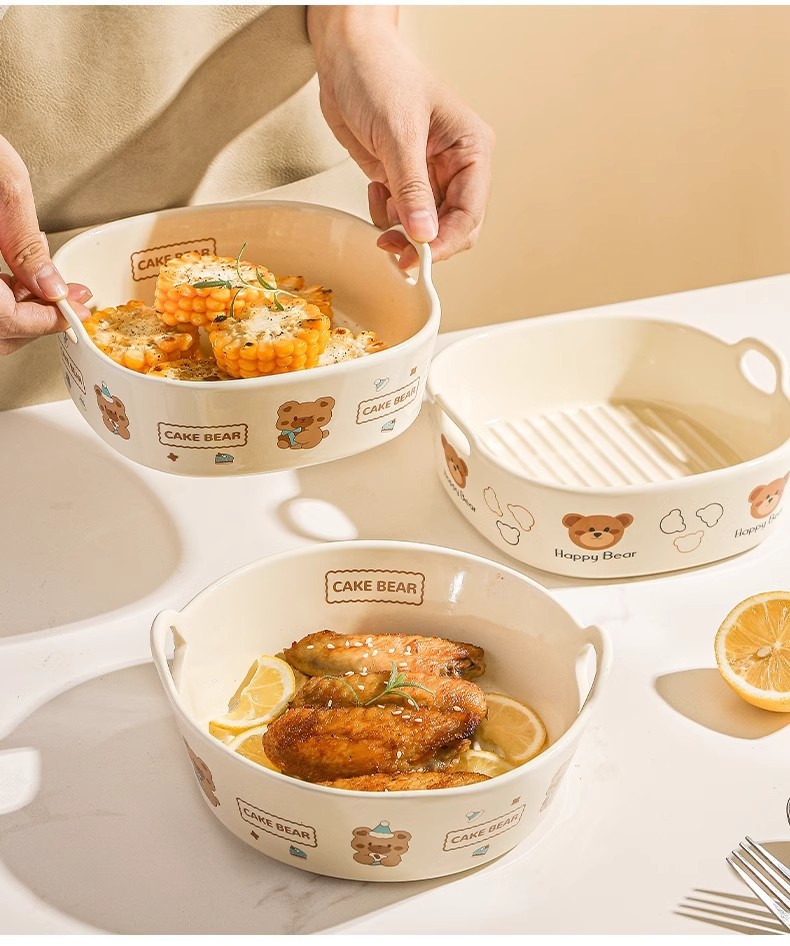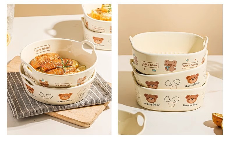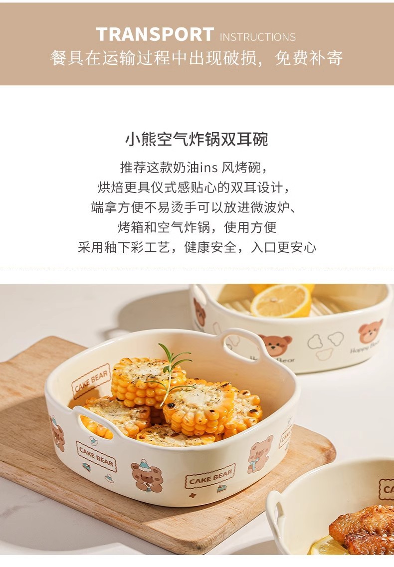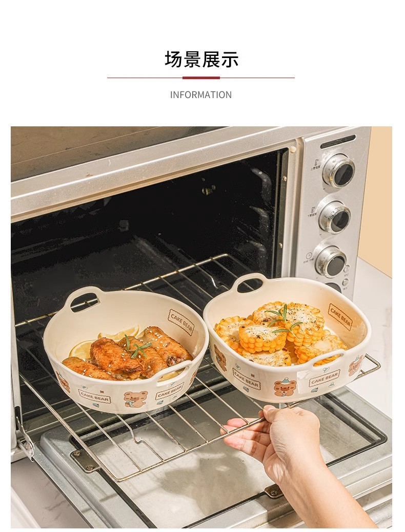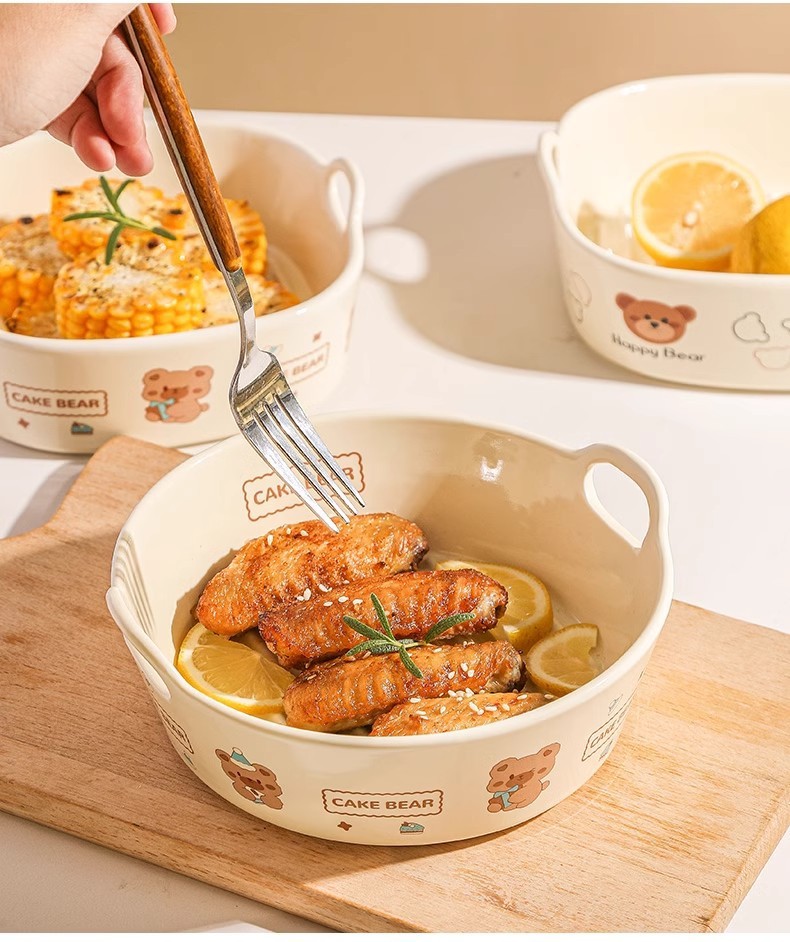 両耳空気フライヤー専用のボウルオーブン用焼きボウル陶磁器グラタン焼き皿焙煎ボウル蒸し卵ボウルサラダボウル