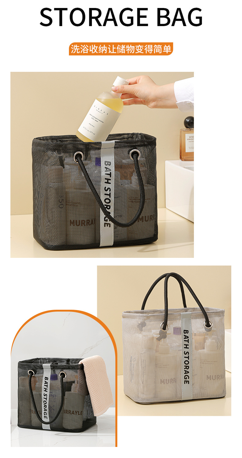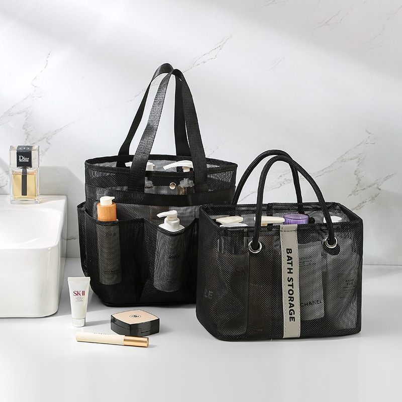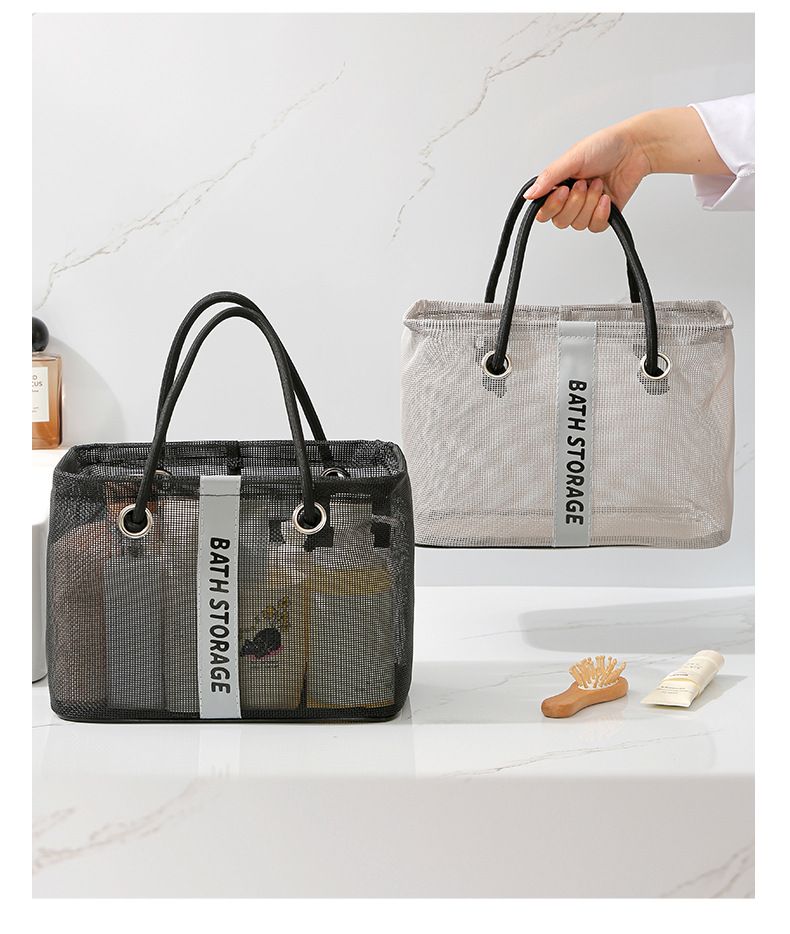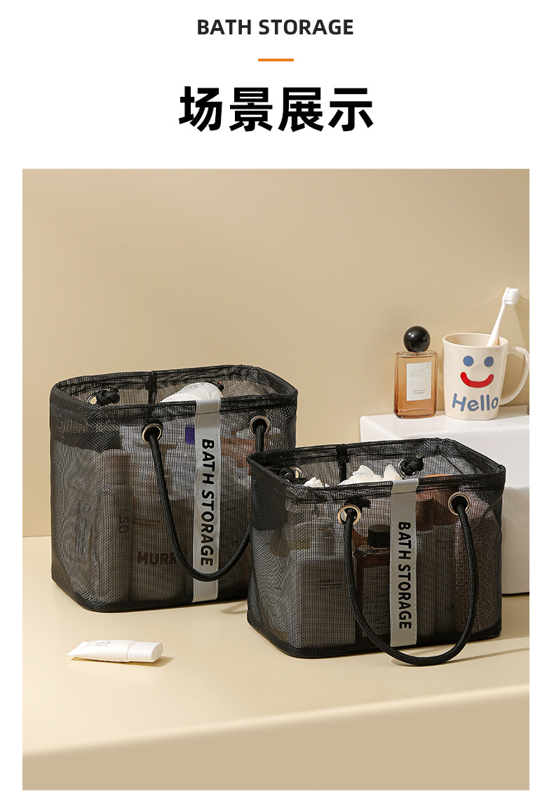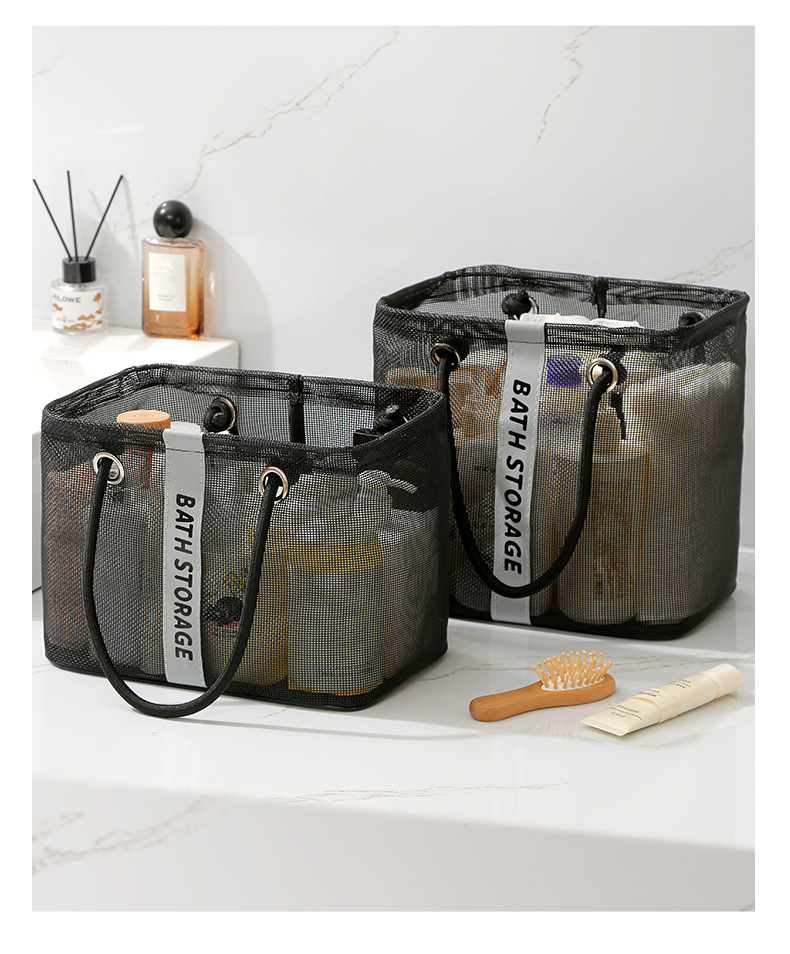 メッシュトイレタリー収納袋、大容量、通気性のある旅行用化粧品収納袋、多機能水泳入浴排水バスケット