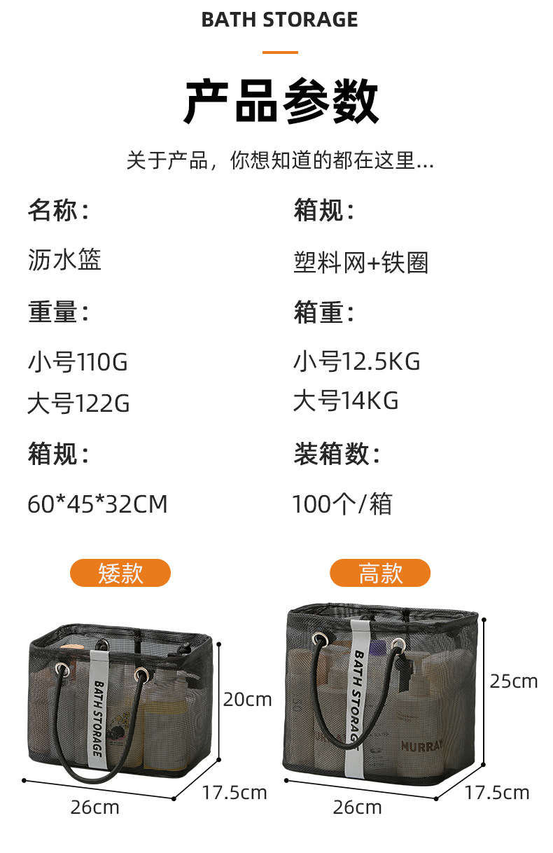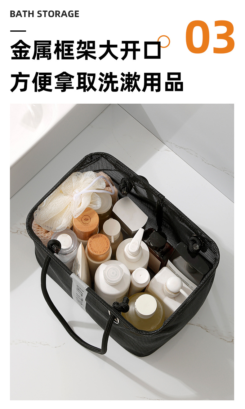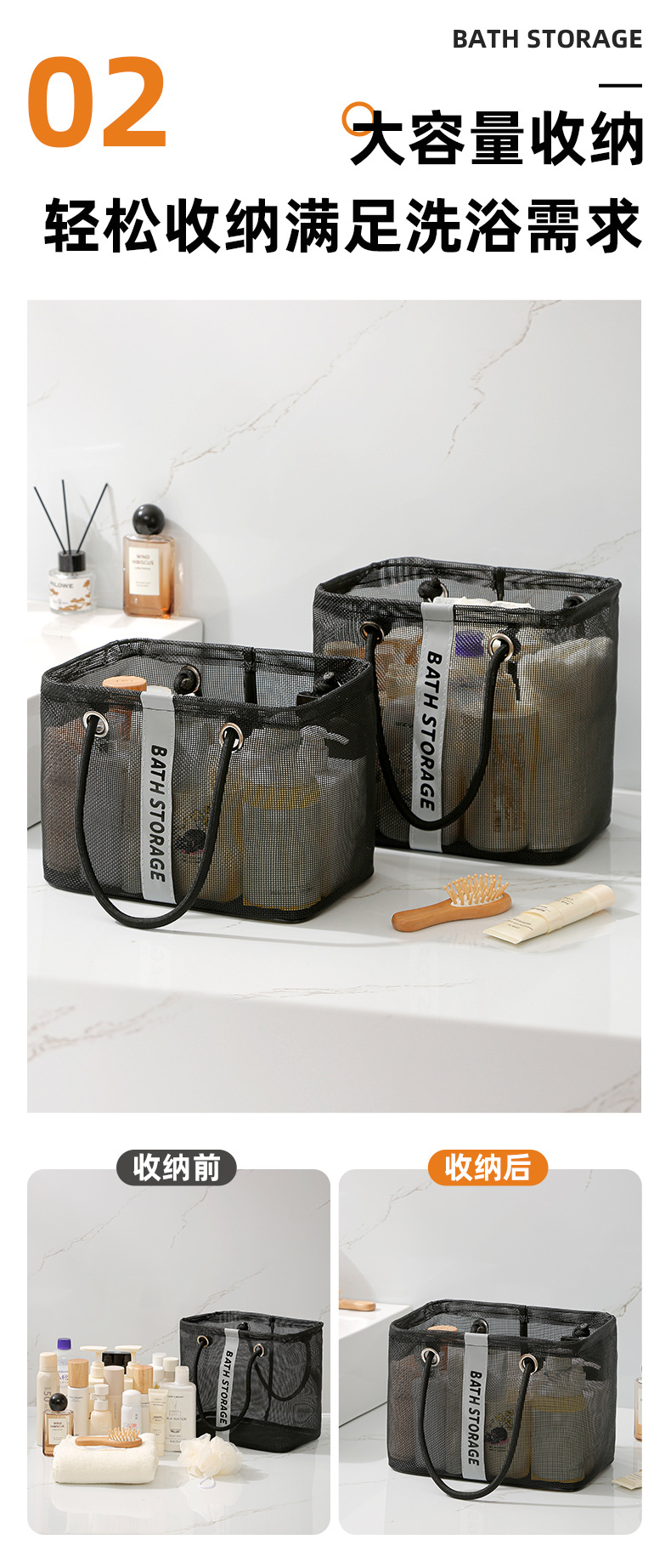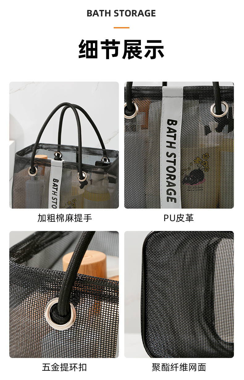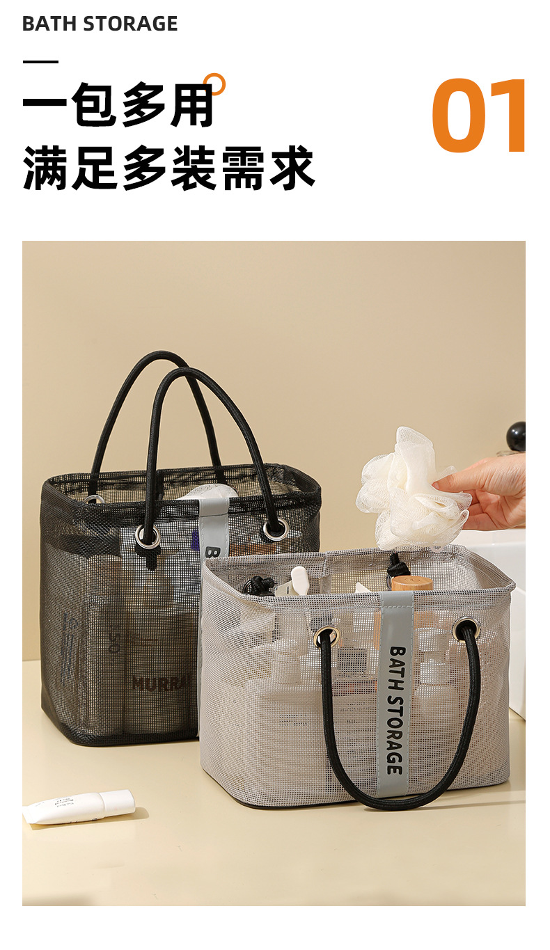 メッシュトイレタリー収納袋、大容量、通気性のある旅行用化粧品収納袋、多機能水泳入浴排水バスケット