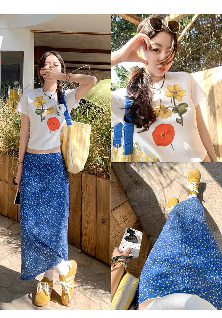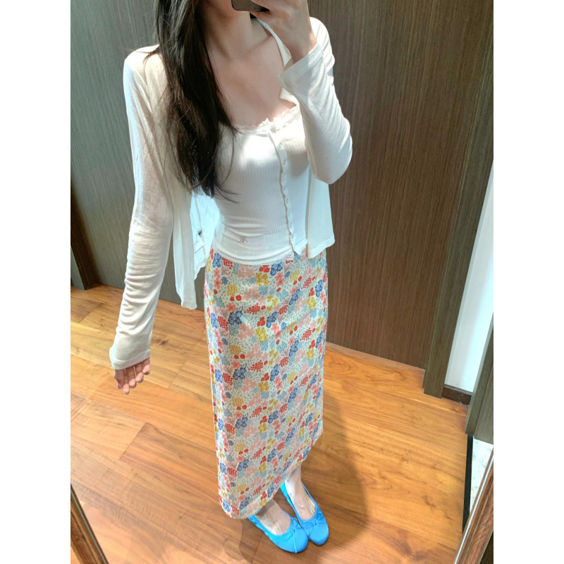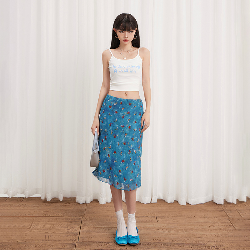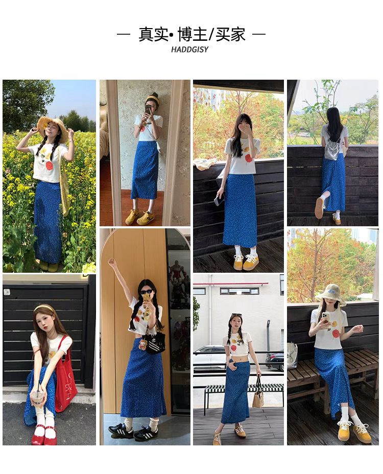 3つの完全な標準、Tmall品質、5ラインエッジの花柄スカート、女性の新しい夏のスリムロングスカート