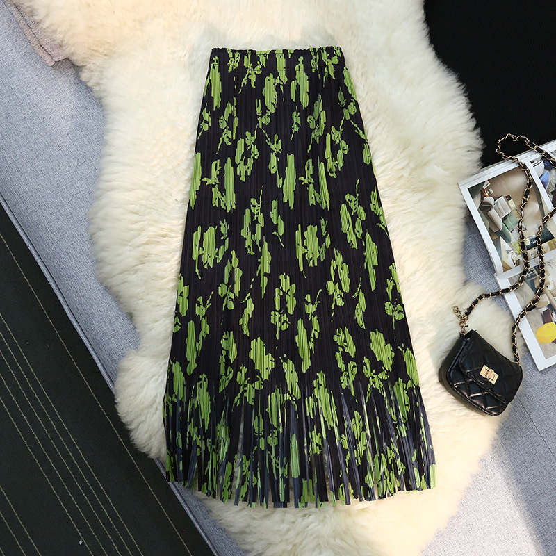 三宅のしわの花のフリンジの半身のスカートの2024夏の中で長いタイプは尻のa字の百のスカートを包んでしわの婦人服をつぶします。
