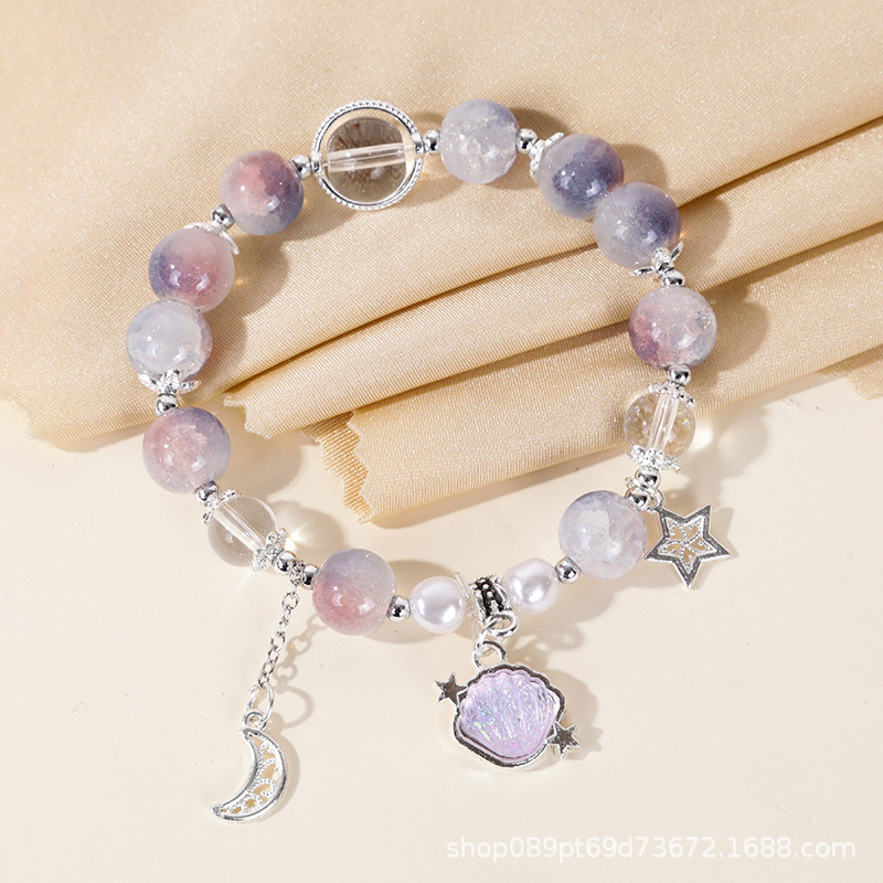 女性用スーパーフェアリーシェルガラスクリスタルブレスレット、ニッチな高級ビーズブレスレット、人気の景勝地のアクセサリー、卸売販売