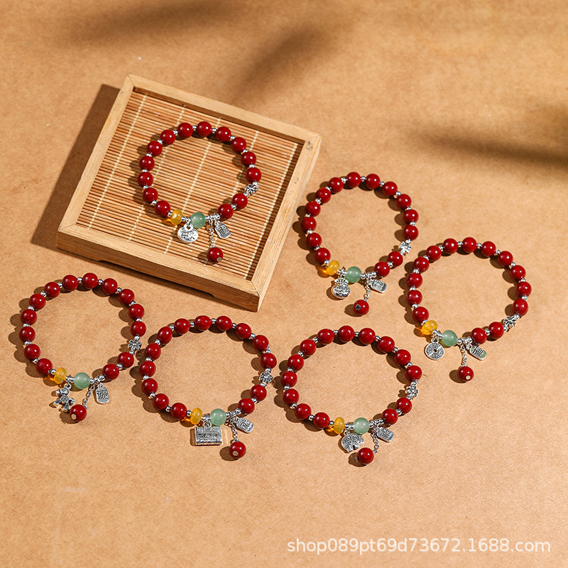 中国風レトロレッドビーズ模造辰砂ガラスブレスレット、女性向け人気ブレスレットジュエリー、卸売および露店供給