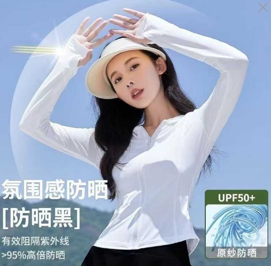 Xiao Ye の女性用の同じスタイルのショートアイスシルク日焼け止め服、新しい夏のファッション、甘くて多用途、フード付きドーパミンスリムフィット