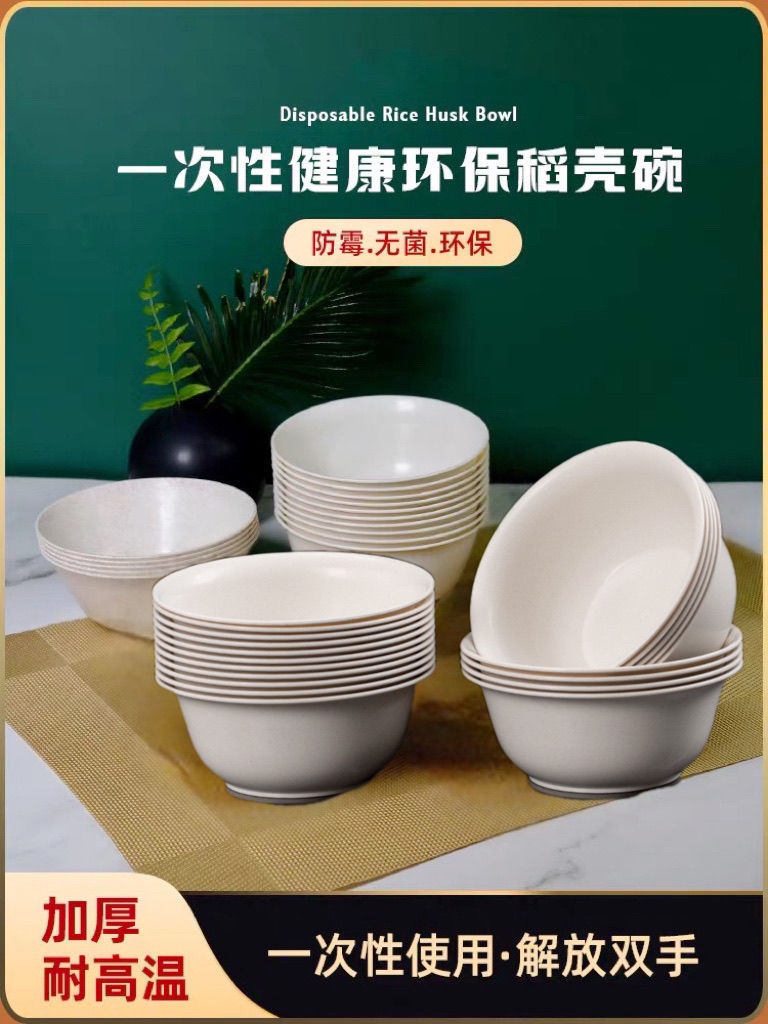 厚みのある籾殻使い捨てボウル、環境に優しいボウル、食器、使い捨て高温耐性ボウル、家庭用分解性丸ボウル卸売