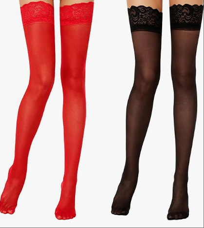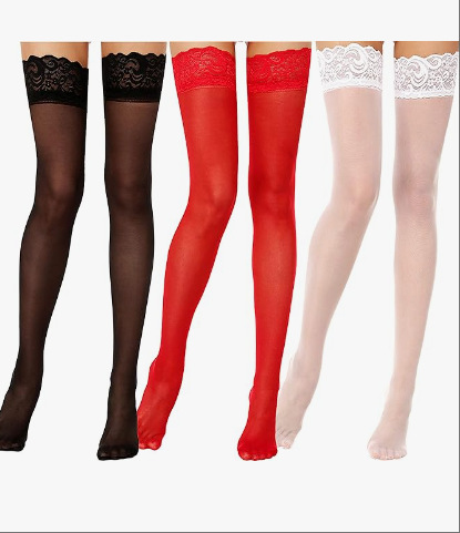 女性用クロスボーダー大きいサイズロングストッキング、薄手、破れにくい、太めの女性用ハイストッキング、肌色レース付きオーバーニーソックス、女性用クリスマスソックス