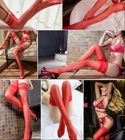 レースホワイト,レースブラック,レースの肌の色,レースレッド,レッドエッジとブラックシルクのレースサスペンダーレッグリング,レースサスペンダー脚リングブラックエッジブラックストッキング,赤いレースと黒いシルク
