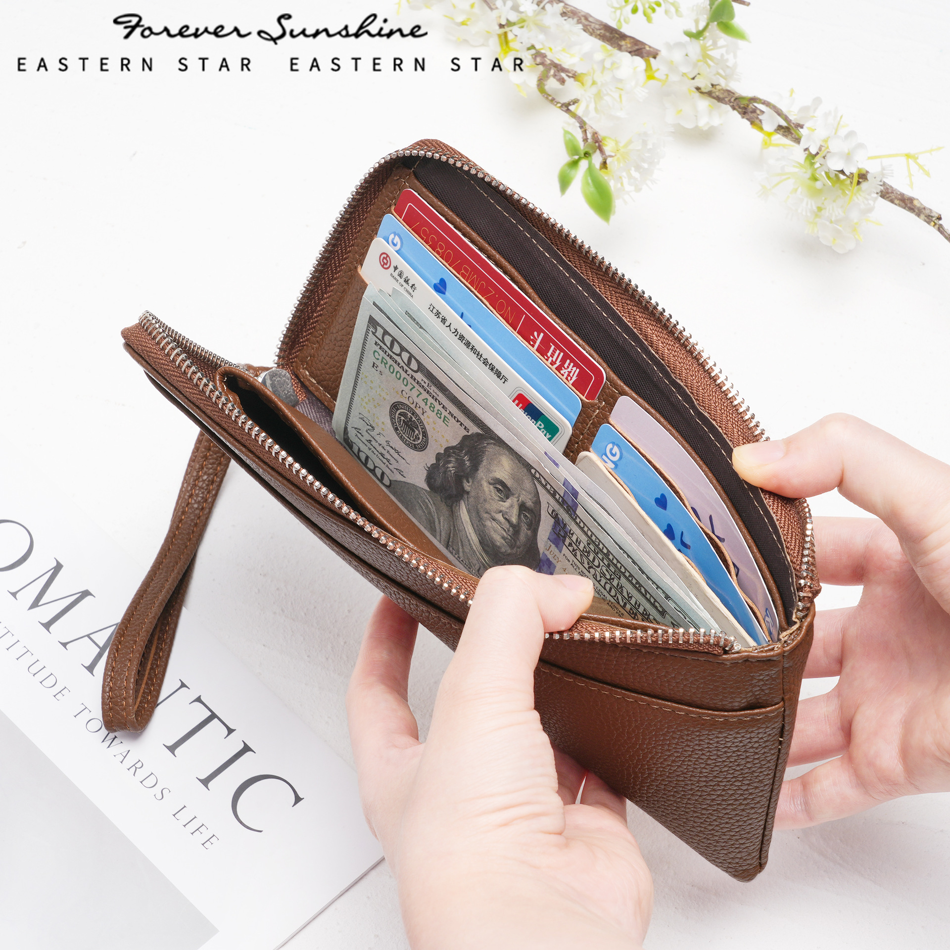 时尚女长款超薄拉链钱包手拎包卡包PU女士零钱包日韩 WALLET