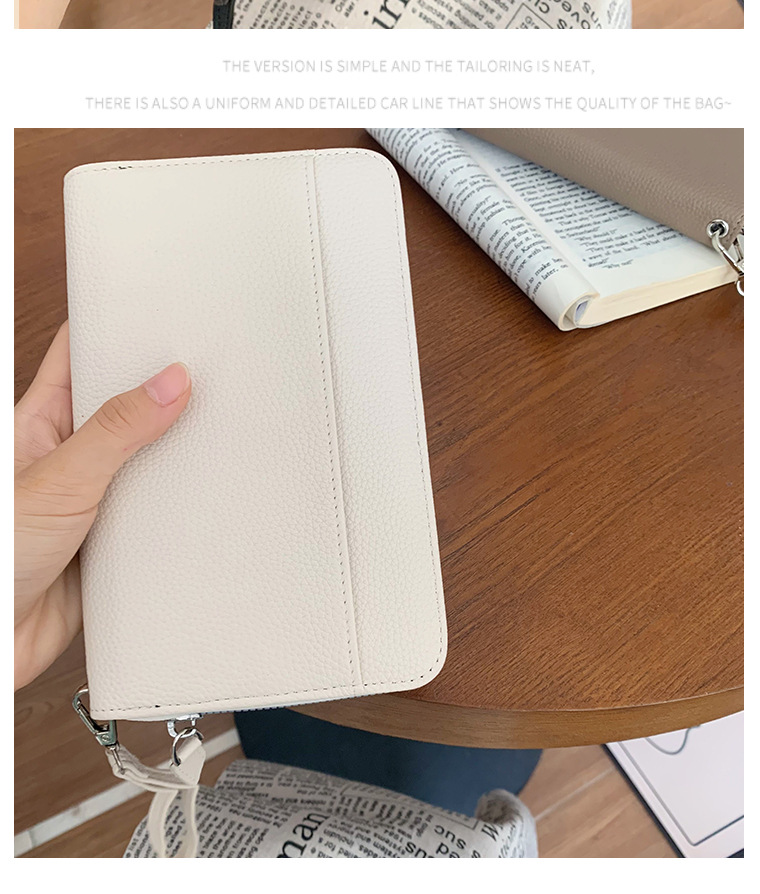 ライチの紋様の純色のパスポートカバーの証明書の多機能パスポートカバーの女性の大容量の長い財布の航空券