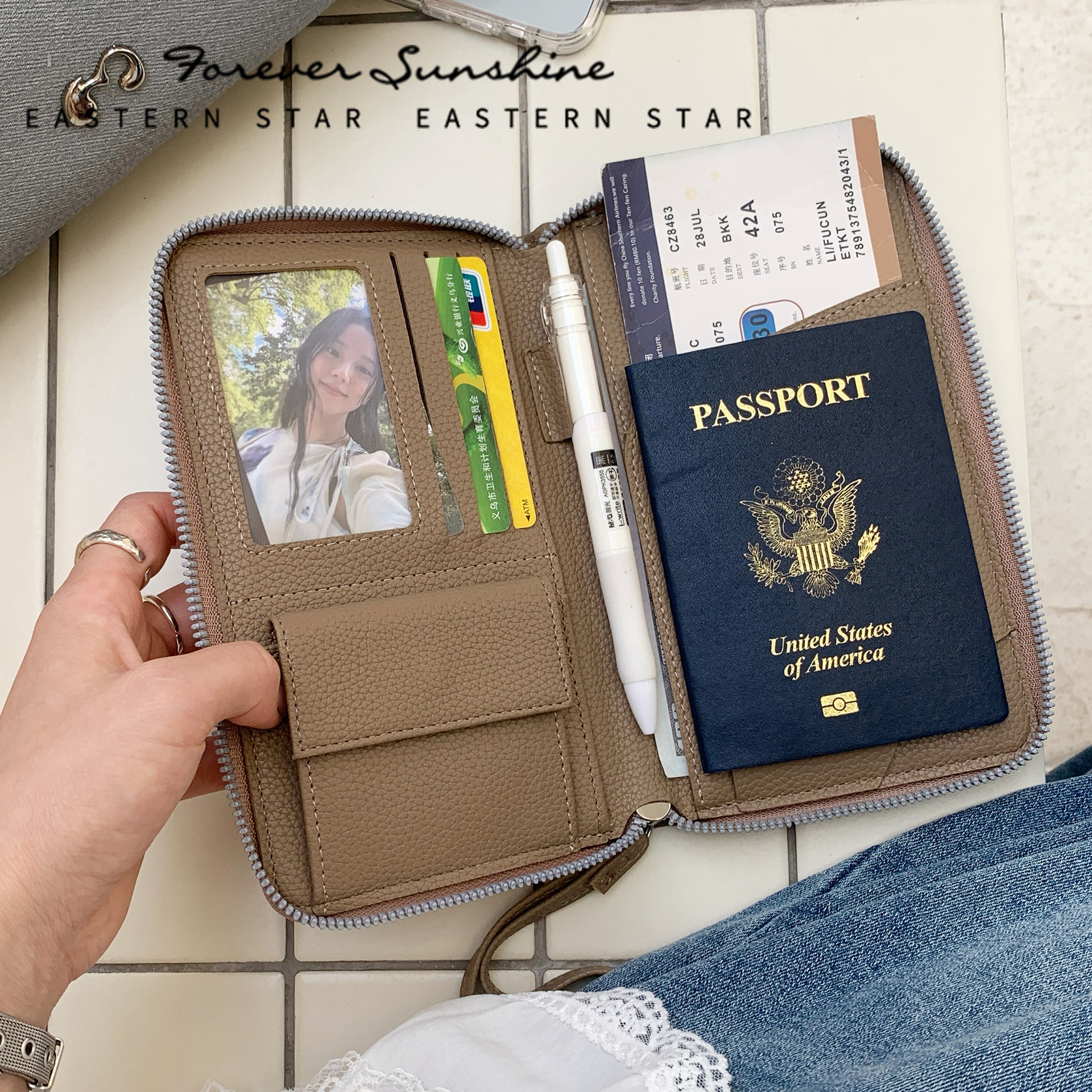 日本製大容量ジッパーアコーディオン財布レディースハイエンドシンプルなミドル丈チケットパスポートドキュメント収納バッグ