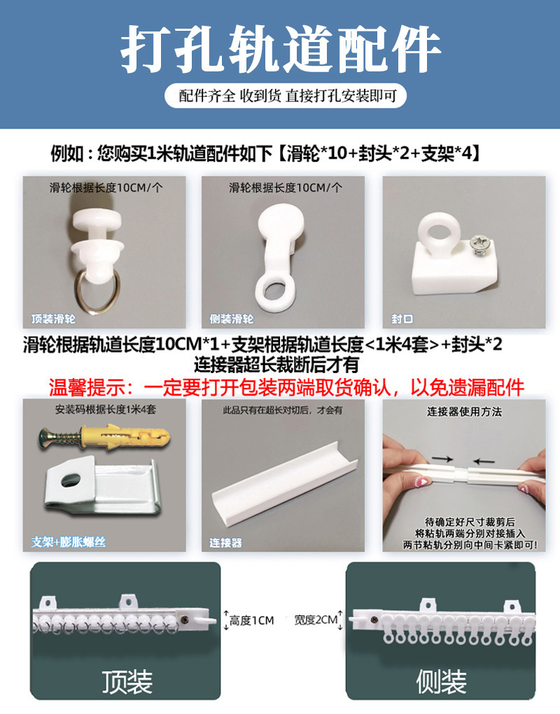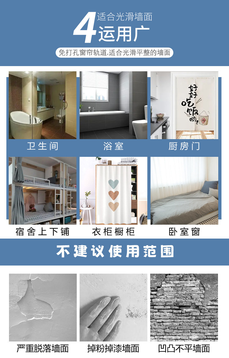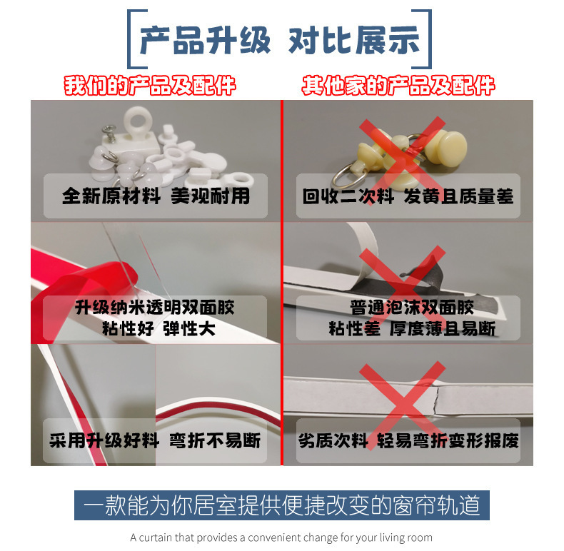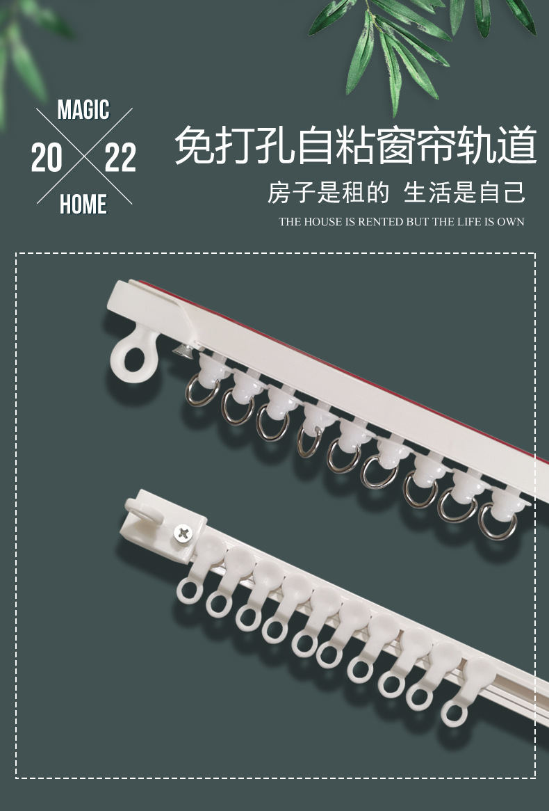 カーテンレール、パンチフリースライドレール、サイドマウント、トップマウント、粘着式サイレントレール、カーテンアクセサリーロッド、粘着レール、パンチング