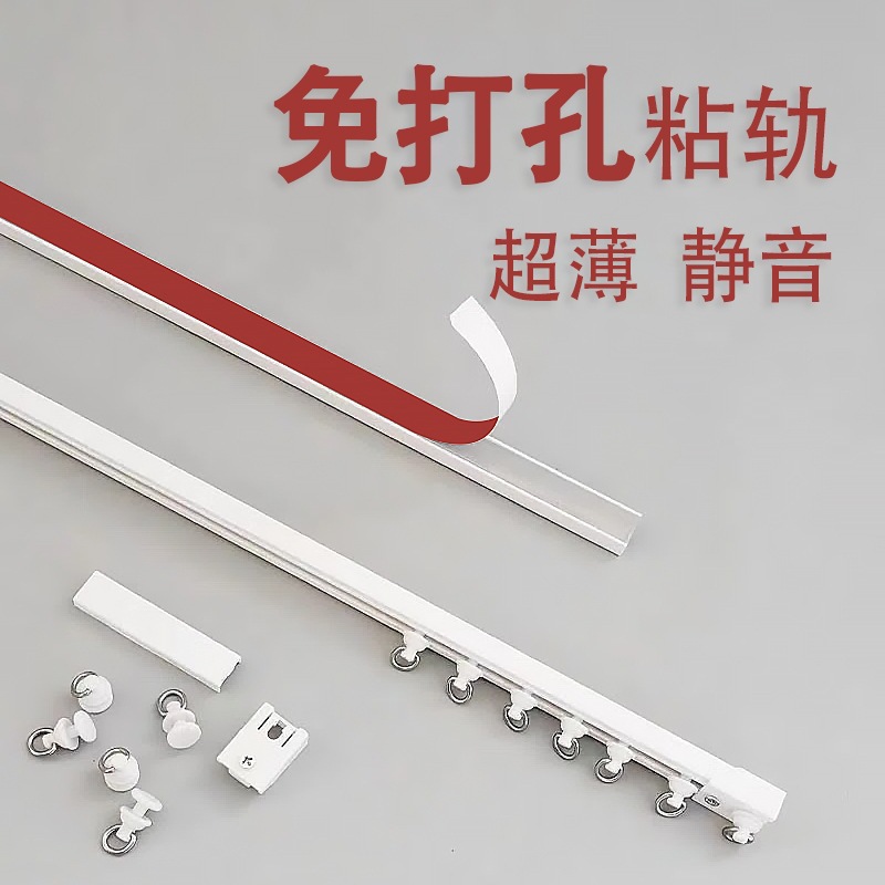 カーテンレール穴なしスライドレール側装トップ付自粘静音超薄レールカーテン部品ロッド粘レールスライド
