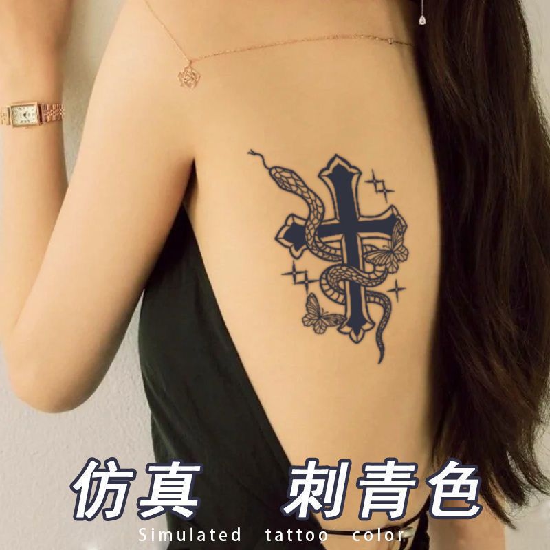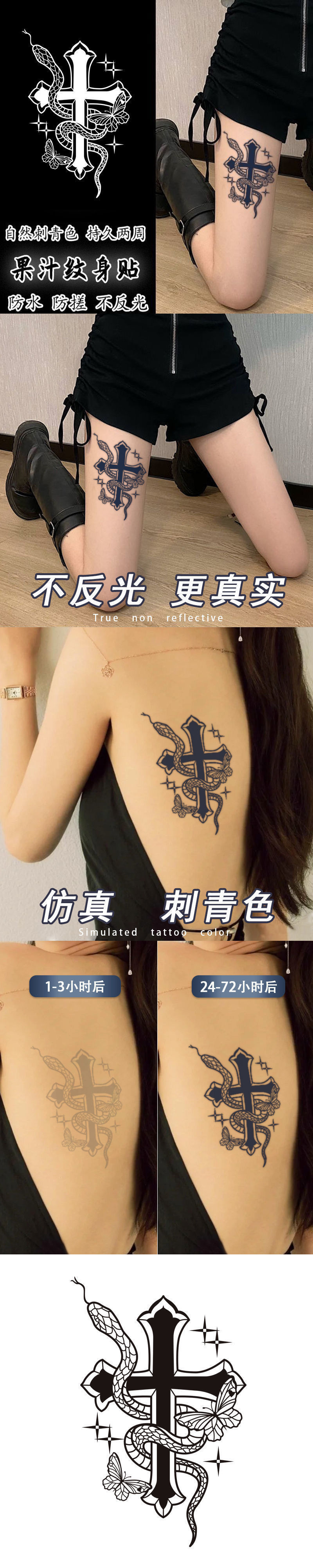 スネーククロスバタフライ太ももバックネットセレブタトゥーステッカー男性と女性用、長持ちする防水甘くてクールなタトゥー