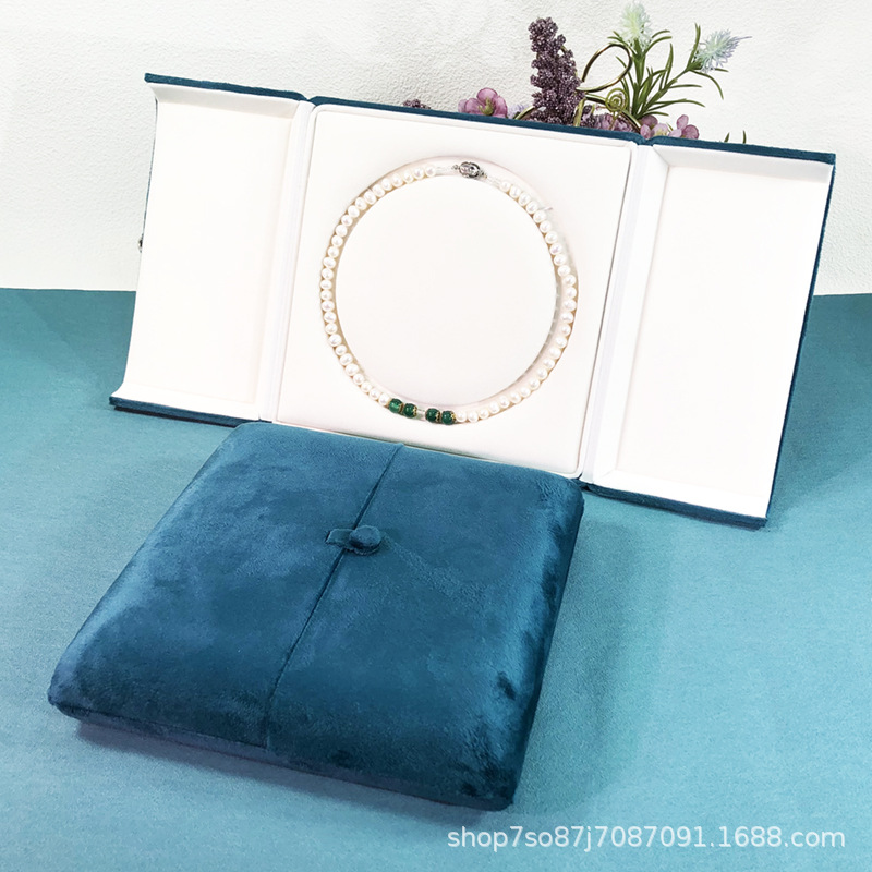 厂家直销高档绒布双开孔雀蓝珍珠礼盒按扣首饰盒丽丝绒套链盒现货