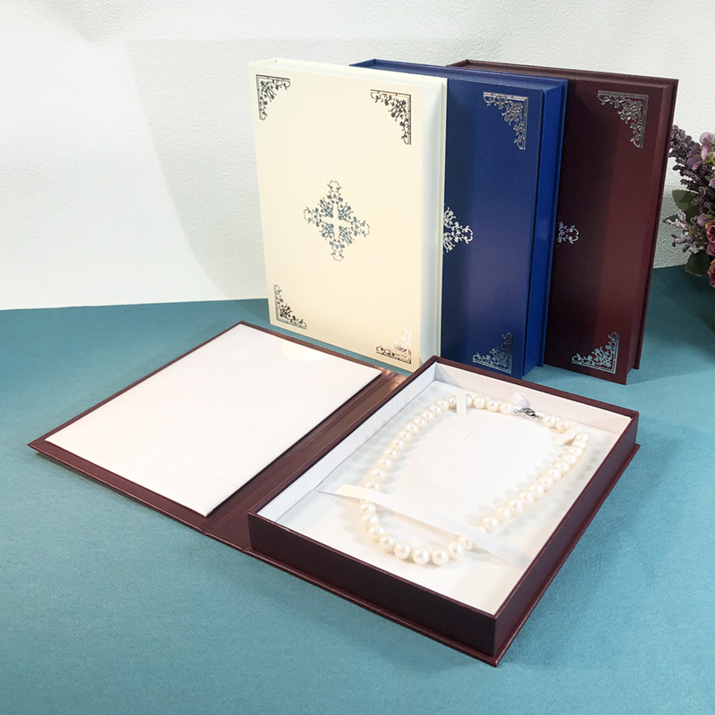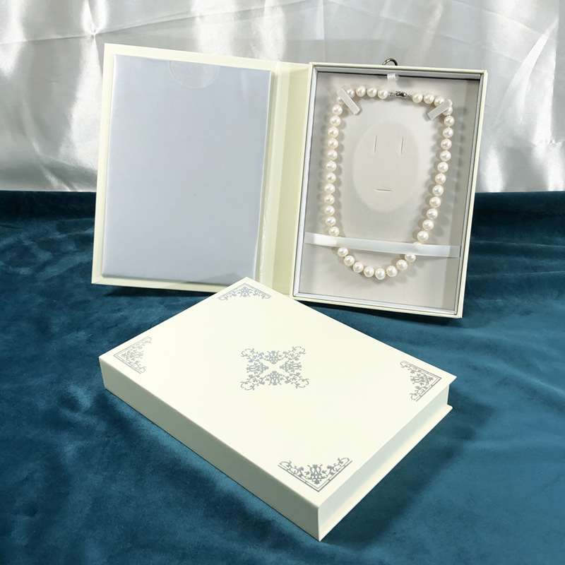 ブック型パールネックレス収納ボックスフリップトップパールジュエリーイヤリングディスプレイボックスライト高級ハイエンドパール包装ボックス