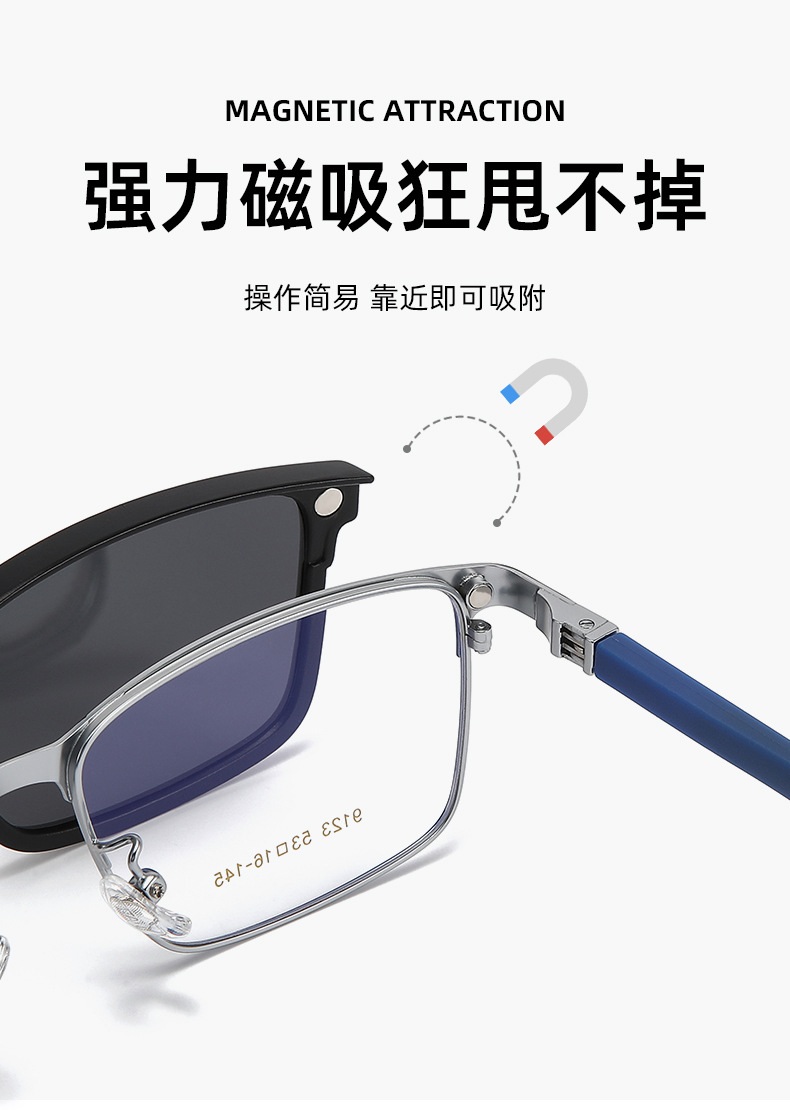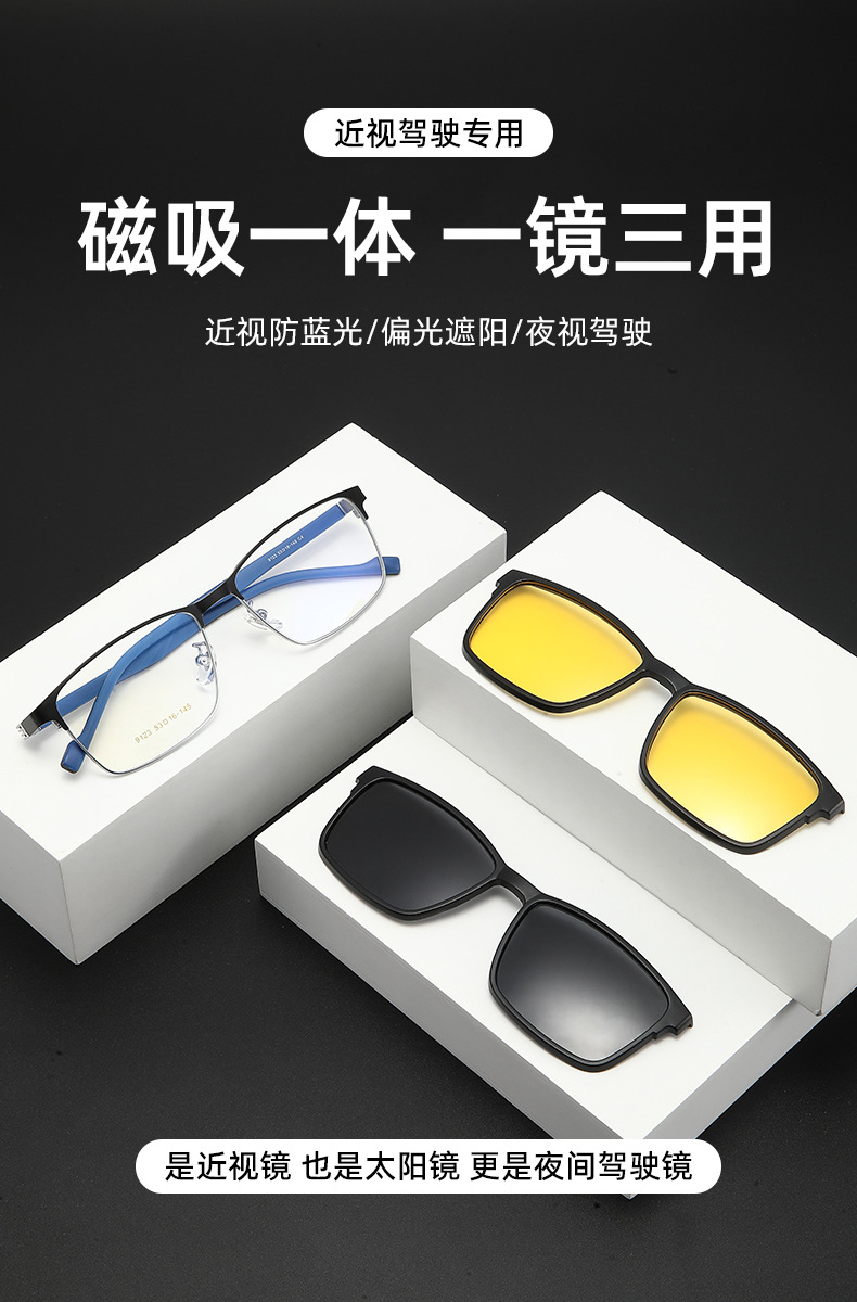 2025 メンズ偏光サングラス磁気サングラス近視メガネフレーム抗青色光メガネ 9123 を装備可能