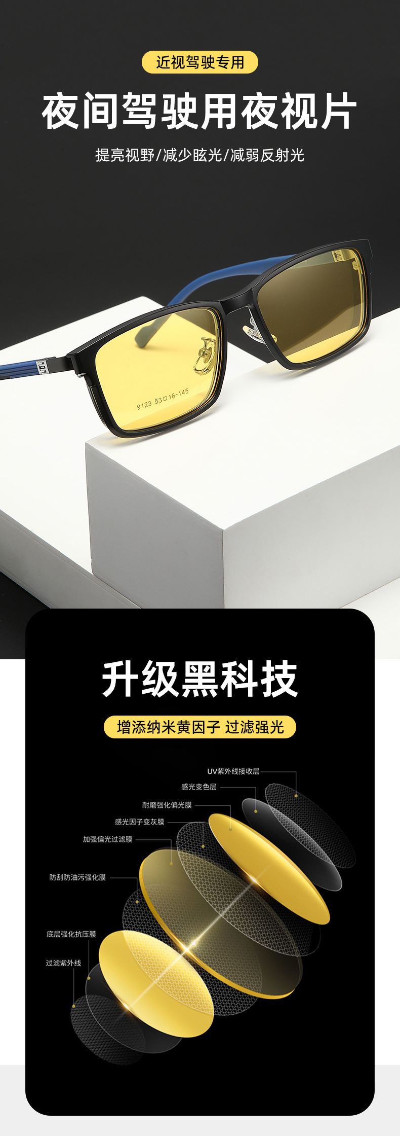 新型マグネット式サングラスに新たな超軽量偏光サングラス93008近視サングラスのブルーレイ防止には度数があります。