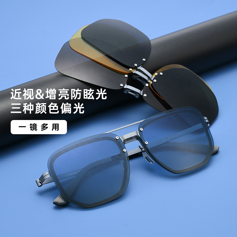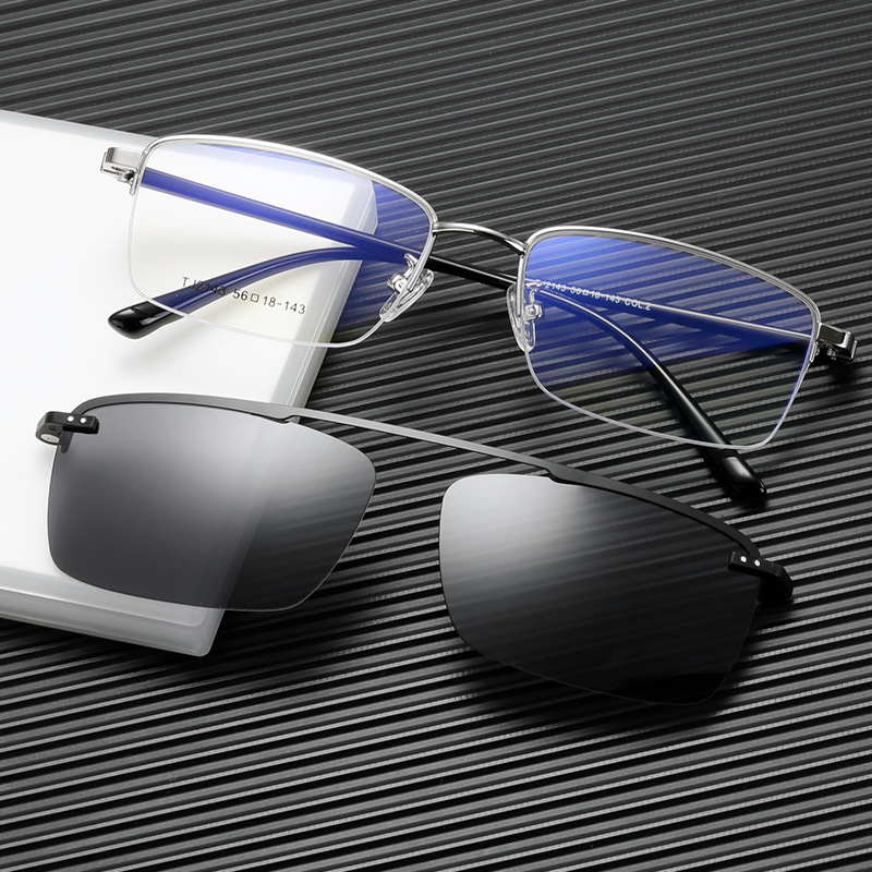 Tj2143男女一体型マグネットクリップサングラスファッションビジネス半枠メガネフレーム近視偏光カバーミラー