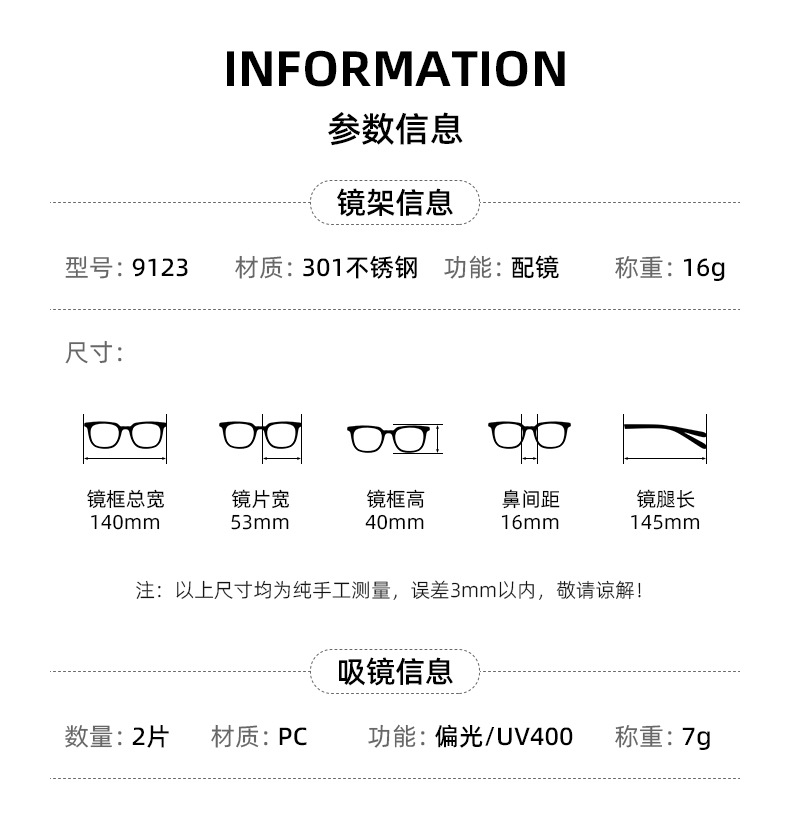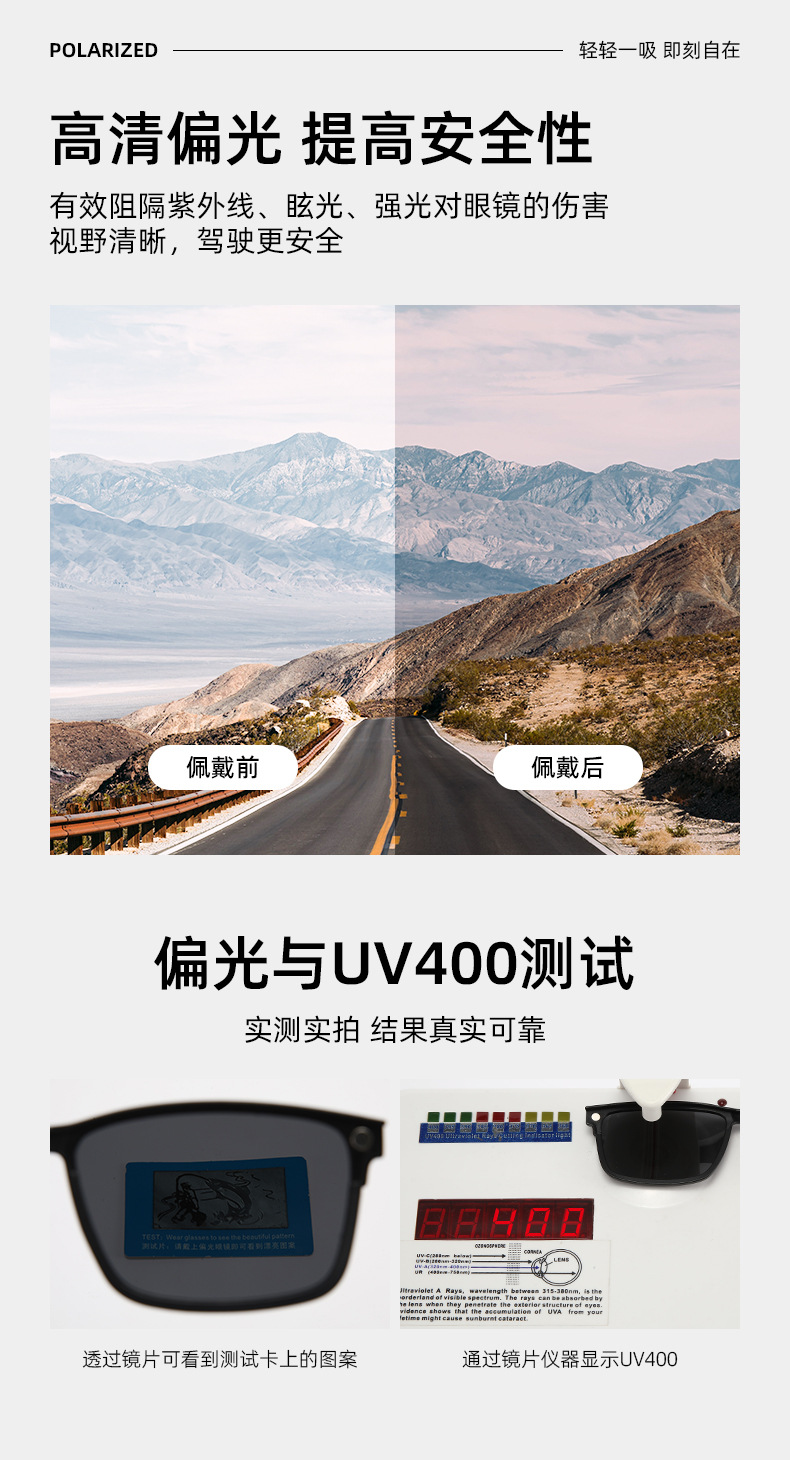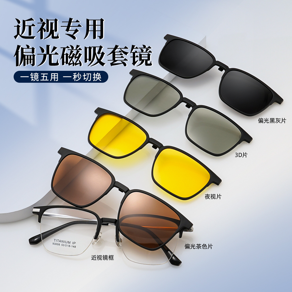 林德同款无螺丝双梁五合一磁吸套镜防紫外线日夜两用偏光眼镜框