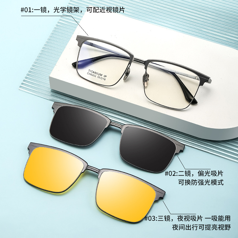 メンズメタルサングラススリーインワン偏光磁気サングラス近視メガネフレーム1306を装備可能