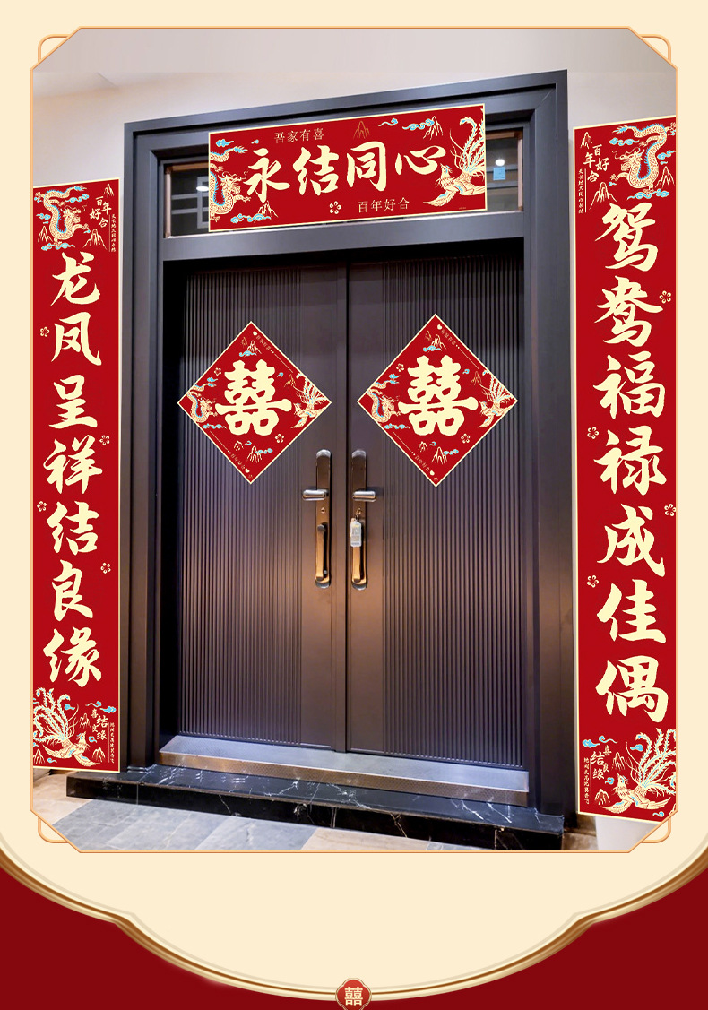 结婚女方新婚农村别墅自建房对联喜字贴男方婚礼大门专用喜联装饰