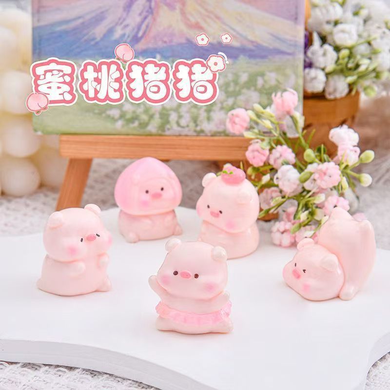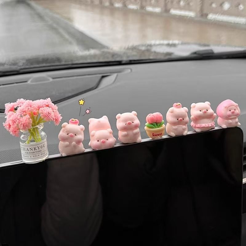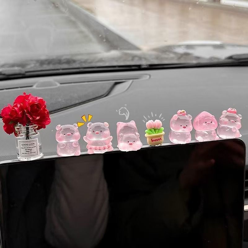 かわいい漫画の人形ミニピーチピンク豚車のセンターコンソール発光装飾品小さな装飾品
