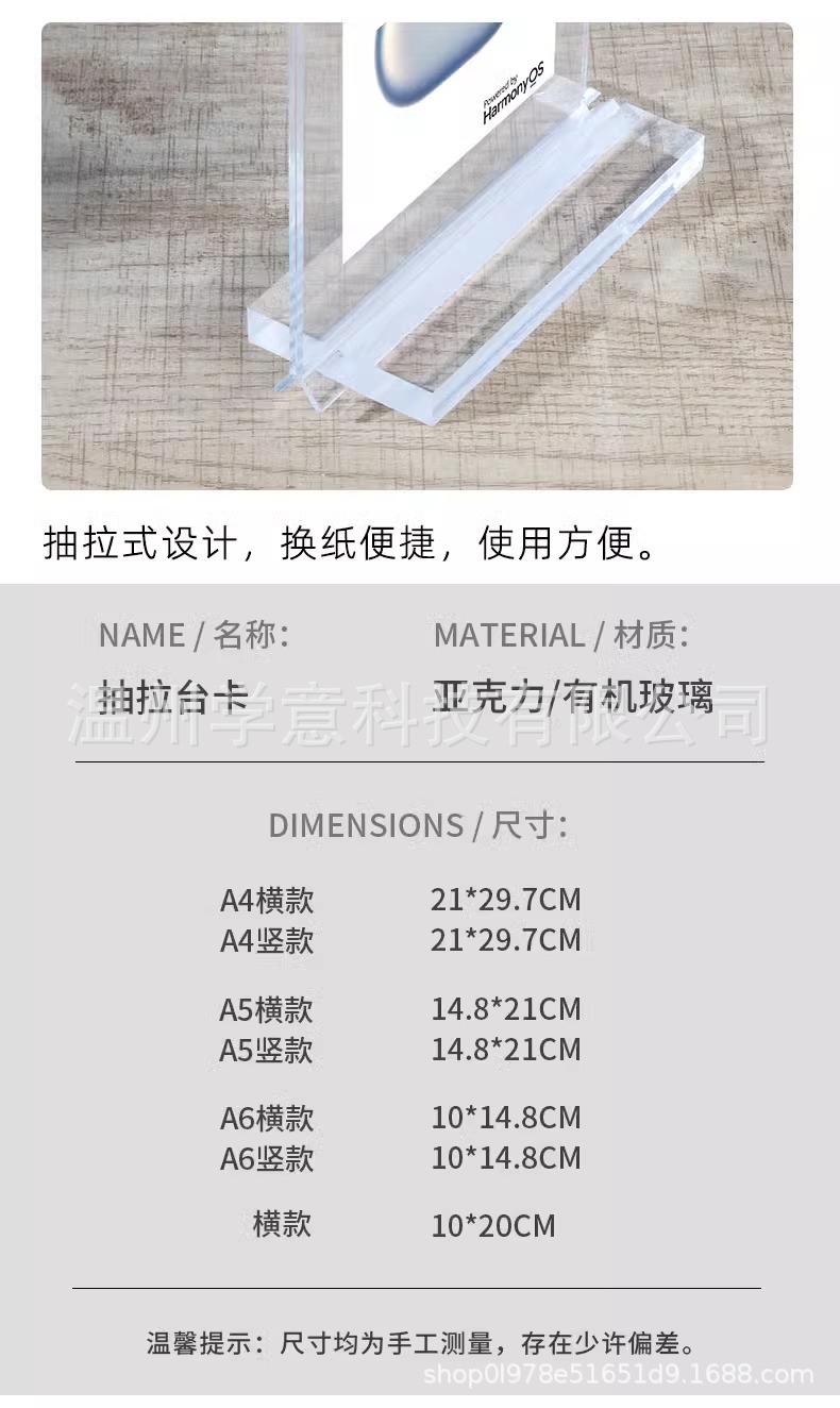 クロスボーダーアクリルテーブルカード表示カードA4引き出しテーブルサインA5プライスカードT型プライススタンドA6デスクトップテーブルカード